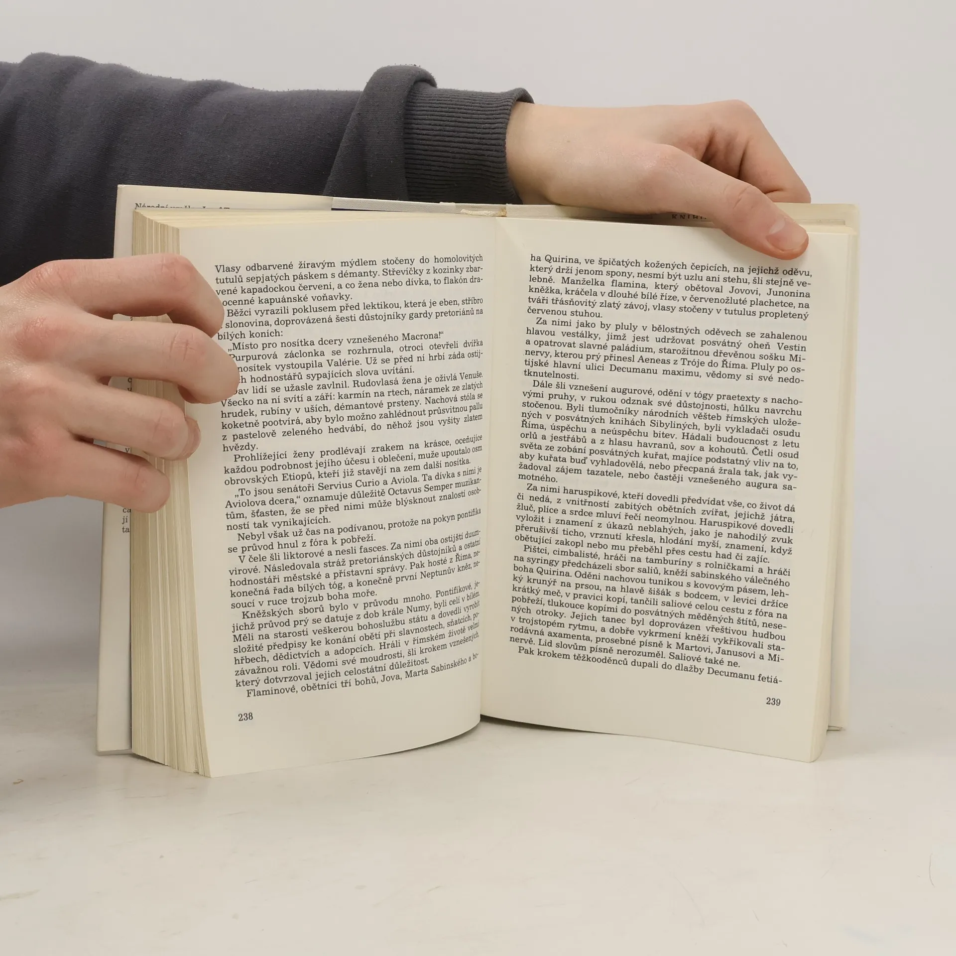Rozsáhlý historický román sugestivně a barvitě přibližuje atmosféru antického Říma za vlády Tiberia a Caliguly. Vznešená římská společnost a římský senát představoval vrstvu kořistníků, kteří v touze po bohatství uzavřeli spojenectví s Caligulou a dokud prosazoval jejich zájmy, drželi ho v čele státu. Osou románu jsou osudy mladého senátorova syna Lucia Curiona, úspěšného vojáka diplomata, který dychtí po kariéře a stává se bezcharakterním přisluhovačem Caligulova řádění, a herce Fabia. Fabius pochází z římské chudiny a je tragickým mluvčím drobného římského lidu. Autor tímto způsobem čtivě a nenásilně ukazuje protiklady Říma vládnoucího a bezbranného.