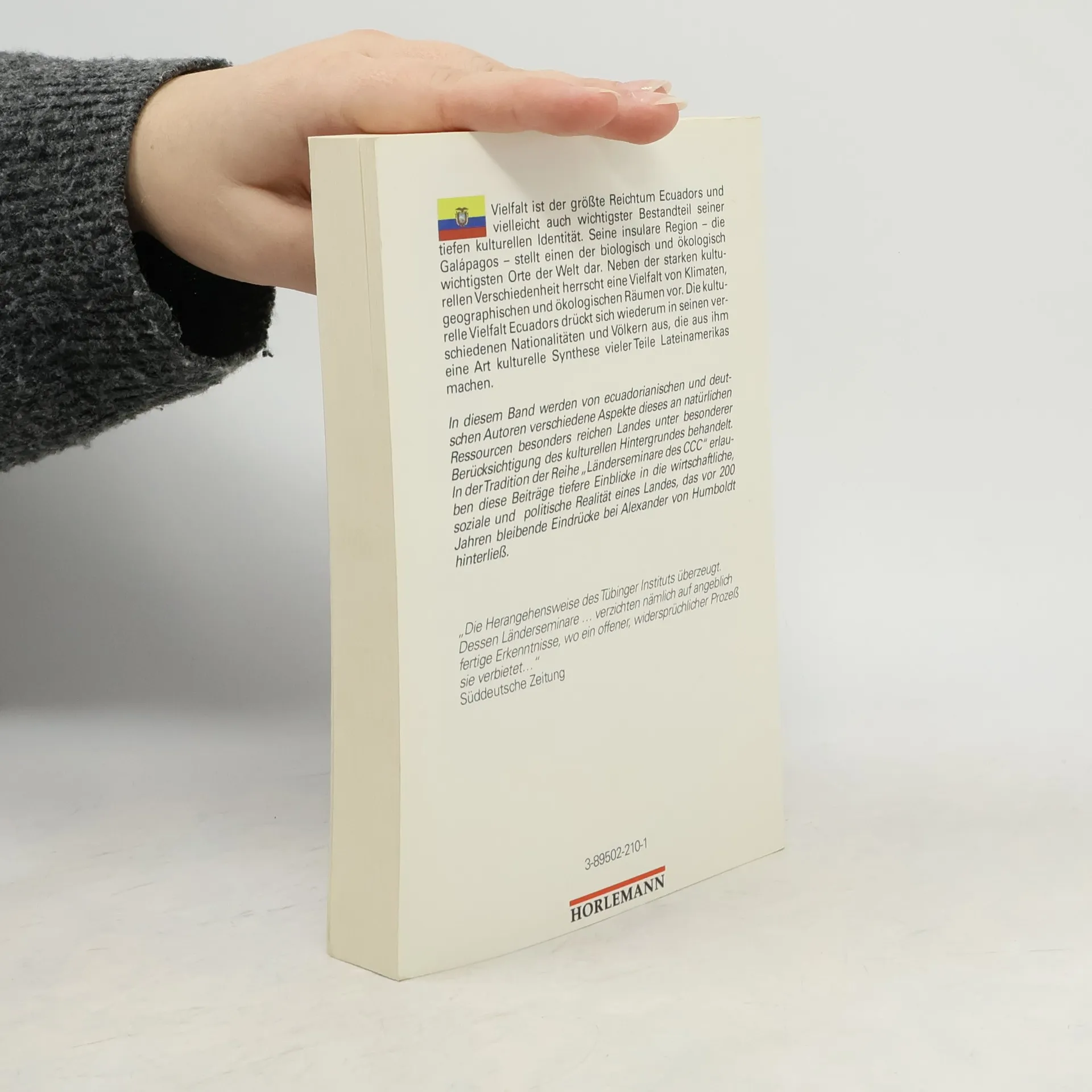 Neben der starken kulturellen Verschiedenheit herrscht eine Vielfalt an Klimata, geographischen und ökologischen Räumen. Die kulturelle Vielfalt Ecuadors drückt sich wiederum in seinen verschiedenen Nationalitäten und Völkern aus, die aus ihm eine Art kulturelle Synthese vieler Teile Lateinamerikas machen. In diesem Band werden von ecuadorianischen und deutschen Autoren verschiedene Aspekte dieses an natürlichen Ressourcen besonders reichen Landes unter besonderer Berücksichtigung des kulturellen Hintergrundes behandelt. In der Tradition der Reihe „Länderseminare des CCC“ erlauben diese Beiträge tiefere Einblicke in die vielfältige wirtschaftliche, soziale und politische Realität eines Landes, das vor 200 Jahren bleibende Eindrücke bei Alexander von Humboldt hinterließ. „… die Herangehensweise des Tübinger Instituts [überzeugt]. Dessen Länderseminare … verzichten nämlich auf angeblich fertige Erkenntnisse, wo ein offener, widersprüchlicher Prozeß sie verbietet….“ Süddeutsche Zeitung. Vielfalt ist der größte Reichtum Ecuadors und vielleicht auch wichtigster Bestandteil seiner tiefen kulturellen Identität. Seine insulare Region – Galápagos – stellt einen der biologisch und ökologisch wichtigsten Orte der Welt dar.