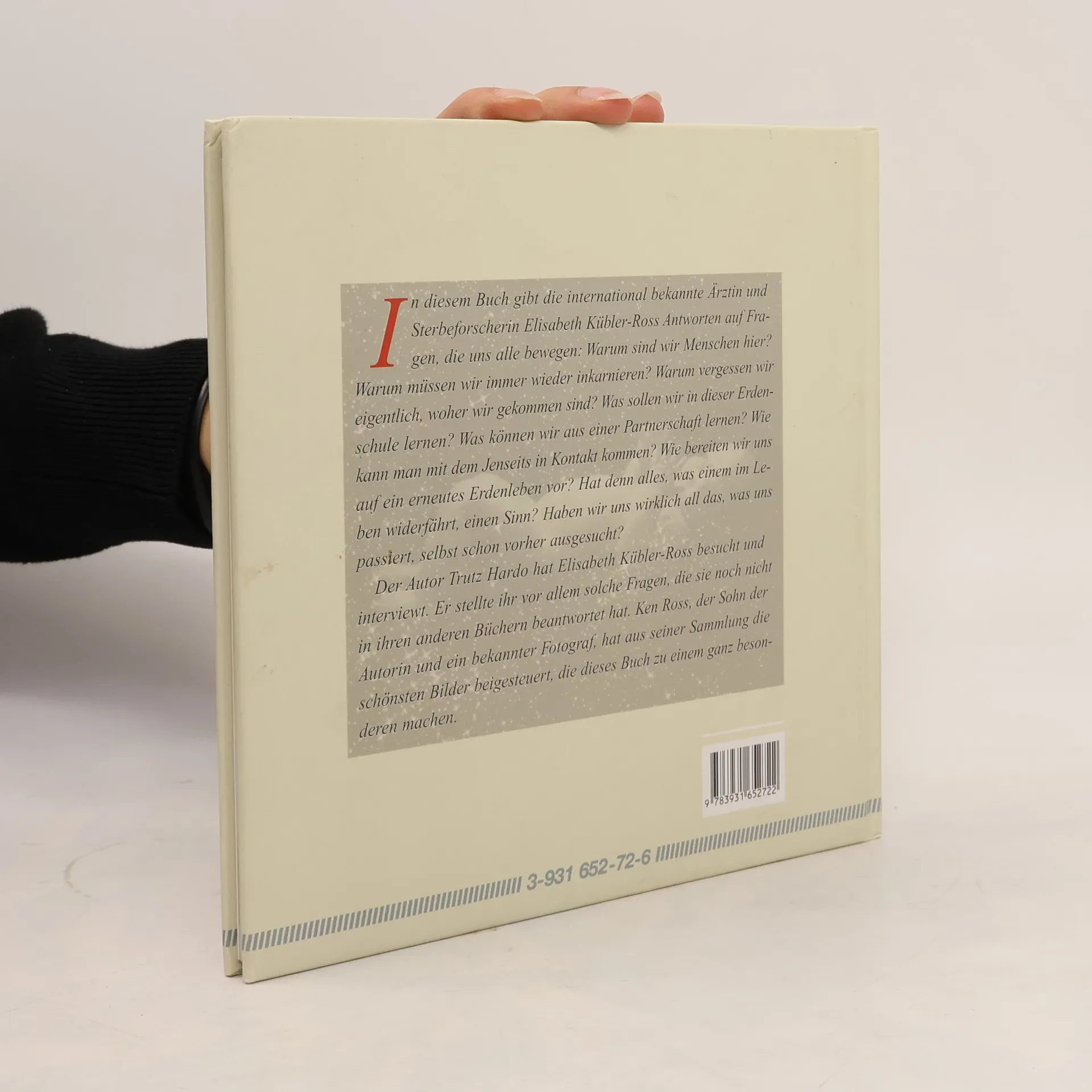 Der Autor Trutz Hardo hat die berühmte Ärztin besucht und mit ihr das Interview geführt. Dabei wurden vor allem Fragen gestellt, auf welche die Autorin bisher noch nicht in ihren Büchern eingegangen ist: Warum sind wir Menschen auf Erden? Warum müssen wir immer wieder inkarnieren? Warum vergessen wir eigentlich, woher wir gekommen sind? Was sollen wir in dieser Erdenschule lernen? Was können wir aus einer Partnerschaft lernen? Wie kann man mit dem Jenseits in Kontakt kommen? Wie bereiten wir uns auf ein erneutes Erdenleben vor? Hat denn alles, was einem im Leben passiert, einen Sinn? Haben wir uns eigentlich all das, was uns passiert, selbst schon vorher ausgesucht? Auf all diese Fragen antwortet uns die große Lebensweise. Ken Ross, der Sohn der Autorin, der unweit von ihr in der Wüste Arizonas lebt, ist ein bekannter Fotograph. Aus seiner großen Sammlung von Bildern aus aller Welt hat der Verlag die schönsten ausgesucht, um dieses Buch zu einem ganz besonderen zu gestalten.
