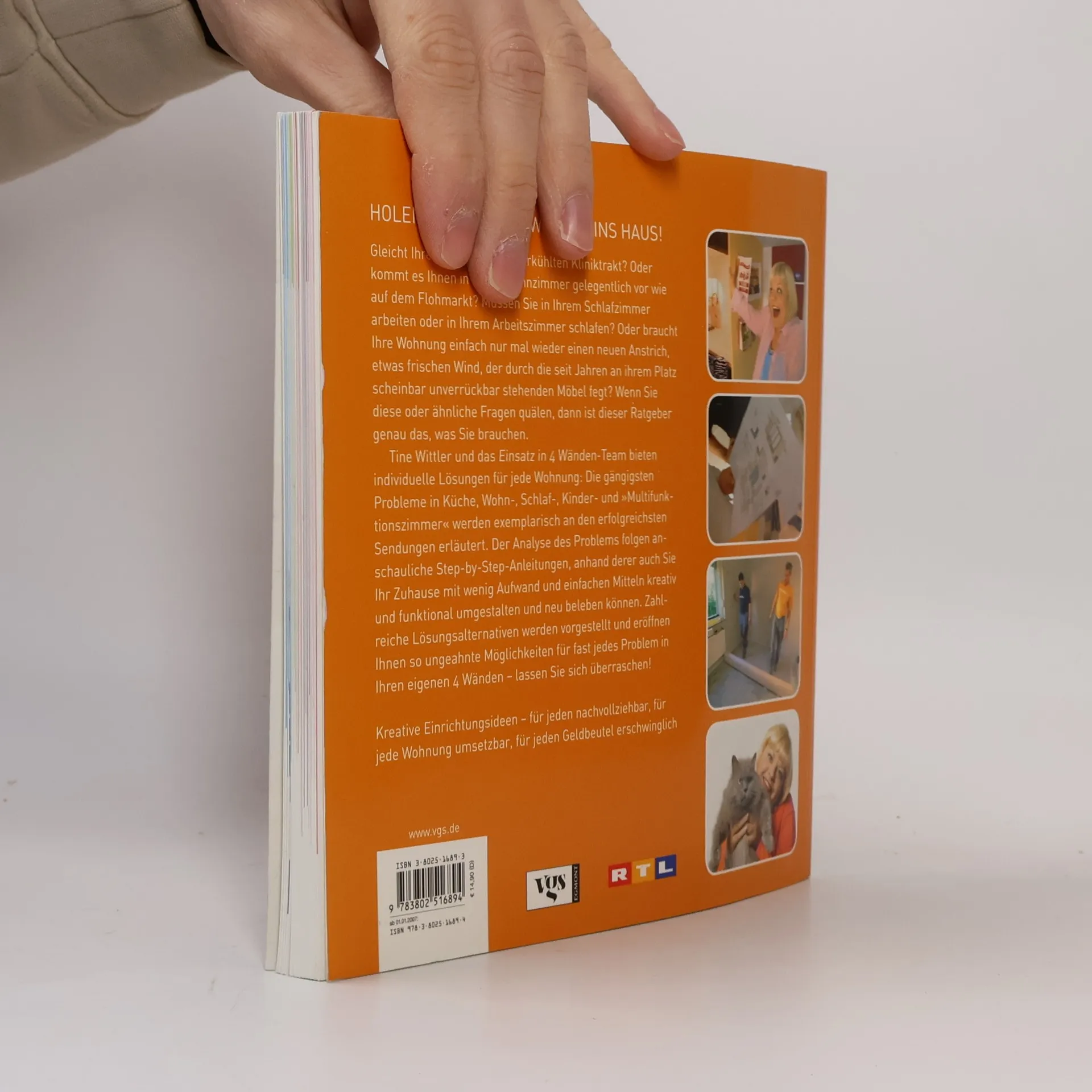 Gleicht Ihre Küche einem unterkühlten Kliniktrakt? Oder kommt es Ihnen in Ihrem Wohnzimmer gelegentlich vor wie auf dem Flohmarkt? Müssen Sie in Ihrem Schlafzimmer arbeiten oder in Ihrem Arbeitszimmer schlafen? Oder braucht Ihre Wohnung einfach nur mal wieder einen neuen Anstrich, etwas frischen Wind, der durch die seit Jahren an ihrem Platz scheinbar unverrückbar stehenden Möbel fegt? Wenn Sie diese oder ähnliche Fragen quälen, dann ist dieser Ratgeber genau das, was Sie brauchen. Tine Wittler und das Einsatz in 4 Wänden-Team bieten individuelle Lösungen für jede Wohnung: Die gängigsten Probleme in Küche, Wohn-, Schlaf-, Kinder- und "Multifunktionszimmer" werden exemplarisch an den erfolgreichsten Sendungen erläutert. Der Analyse des Problems folgen anschauliche Step-by-Step-Anleitungen, anhand derer auch Sie Ihr Zuhause mit wenig Aufwand und einfachen Mitteln kreativ und funktional umgestalten und neu beleben können. Zahlreiche Lösungsalternativen werden vorgestellt, und eröffnen Ihnen so ungeahnte Möglichkeiten für fast jedes Problem in Ihren eigenen 4 Wänden - lassen Sie sich überraschen! Kreative Einrichtungsideen - für jeden nachvollziehbar, für jede Wohnung umsetzbar, für jeden Geldbeutel erschwinglich.