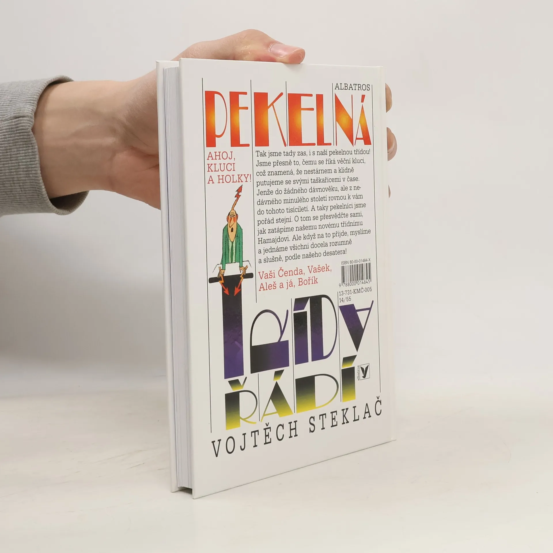 Tak jsme tady zas, is naší pekelnou třídou! Jsme přesně to, čemu se říká věční kluci, což znamená, že nestárnem a klidně putujeme se svými taškařicemi v čase. Jenže do žádného dávnověku, ale z nedávného minulého století rovnou k vám do tohoto tisíciletí. A taky pekelníci jsme pořád stejní. O tom se přesvědčte sami, jak zatápíme našemu novému třídnímu Hamajdovi. Ale když na to přijde, myslíme a jednáme všichni docela rozumně a slušně, podle našeho desatera!