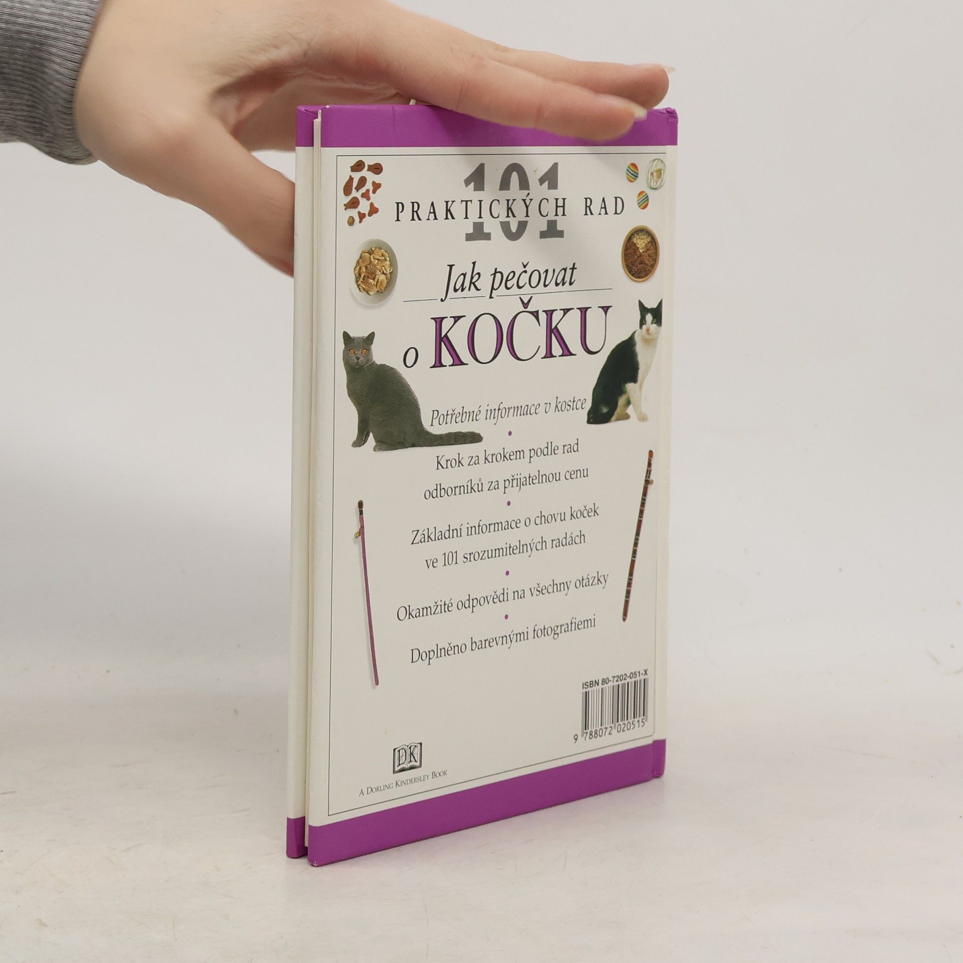 101 praktických rad: Jak si vybrat kočku, základní pomůcky a výchova, správná výživa, kočičí hygiena, rozumíte své kočce?, zdravotní prohlídka, ošetřování kočky, první pomoc