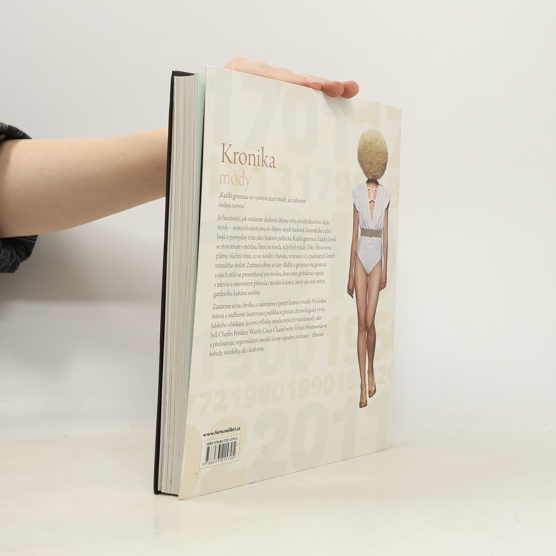 Zastavme se na chvilku a zalistujme v pestré kronice módy. Přehledně řešená a nádherně ilustrovaná publikace přináší chronologický vývoj lidského oblékání, životní příběhy nejslavnějších tvůrců módy jako byli Charles Frederic Worth, Coco Chanel nebo Vivian Westwoodová a představuje nejproslulejší módní ikony západní civilizace – filmové hvězdy, modelky, ale i královny. Je fascinující, jak můžeme sledovat dějiny světa prostřednictvím dějin módy – mimochodem jsou to dějiny stejně třaskavé, dramatické a plné bojů o pomyslný trůn jako historie politická. Každá generace, každý člověk se ztotožňuje s módou, která se nosila, když byl mladý. Díky filmovému plátnu všichni víme, co se nosilo v baroku, renesanci či v padesátých letech minulého století. Zatímco dříve se šaty dědily z generace na generaci a jejich střih se proměňoval jen zvolna, dnes nám globalizace spolu s televizí a internetem přinesla i módní kolotoč, který nás nutí měnit garderóbu každou sezónu.