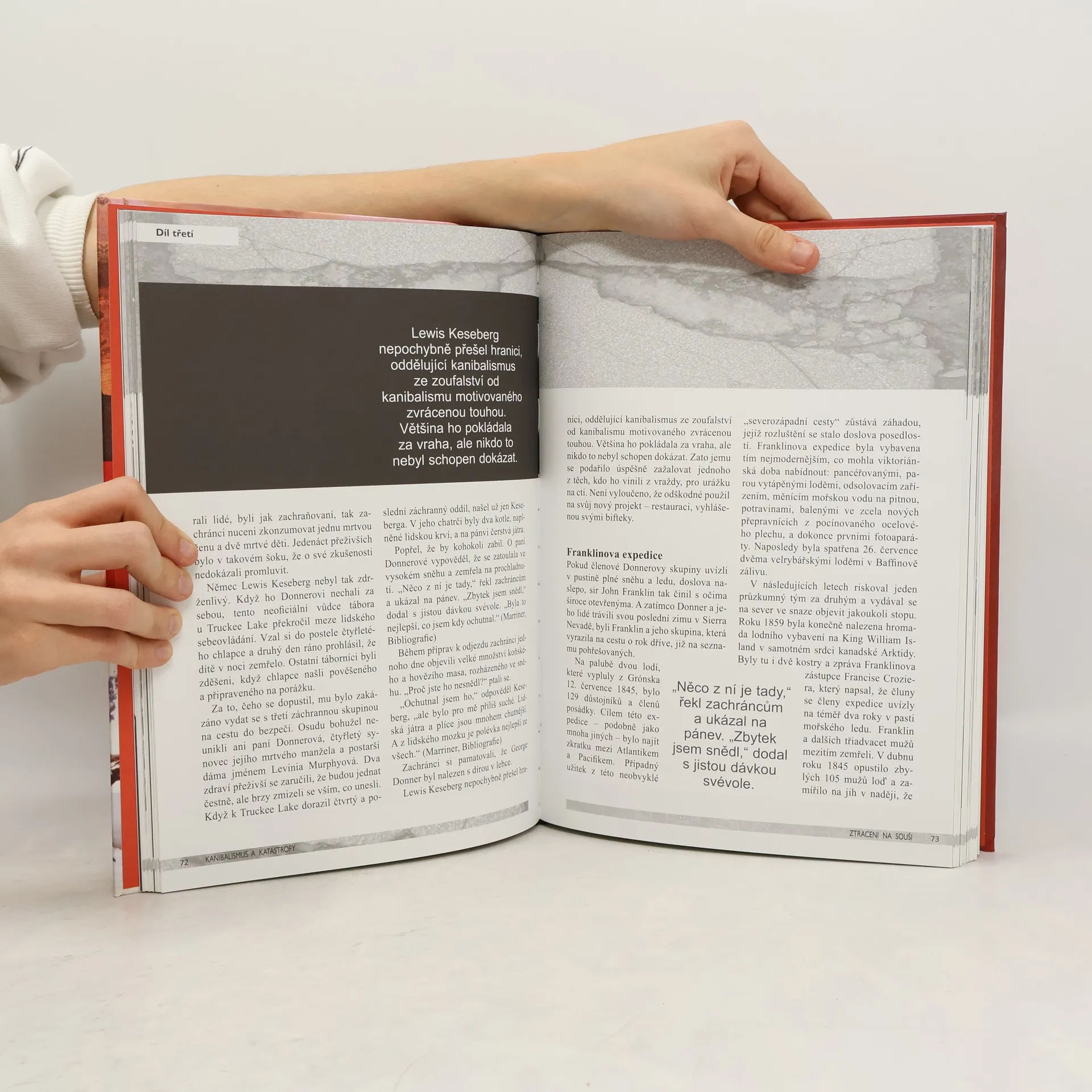 Od starověkých kultur po boj o přežití a moderní psychopaty. Kniha pro silné nátury přináší přehled příčin a způsobů, jak, kdy a kde ke kanibalismu docházelo. Pojídání lidského masa či pití krve bylo známo už z dávných rituálů v primitivních náboženstvích, někdy souviselo se zrůdnými léčebnými či omlazovacími kůrami, ovšem mnoho drásavých i jímavých případů kanibalismu souvisí také se situacemi krajního zoufalství lidí odloučených od zdrojů potravy v občanských válkách v Rusku či v Africe, při hladomorech v Číně a na Ukrajině, ale také při různých neštěstích na souši či na moři. Poslední část knihy je věnována psychopatickým vrahům-kanibalům známým z historie a zachyceny jsou i nedávné kriminální kauzy související s kanibalismem.