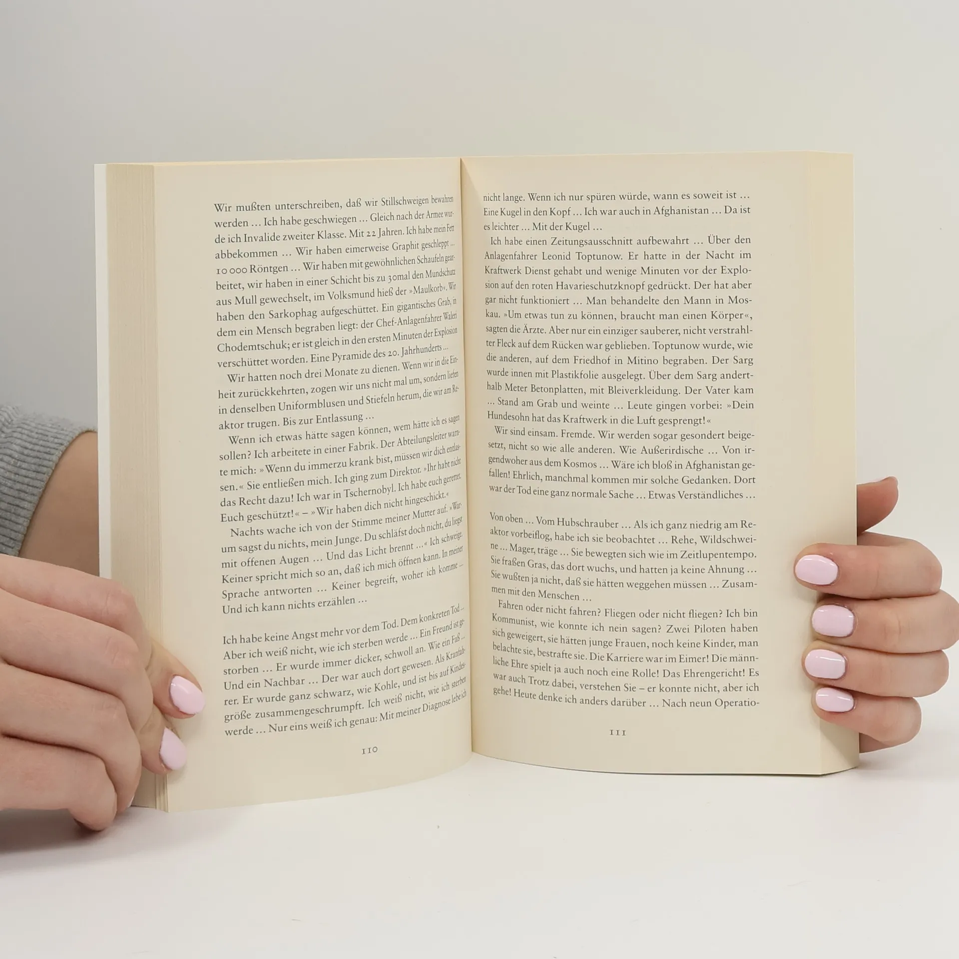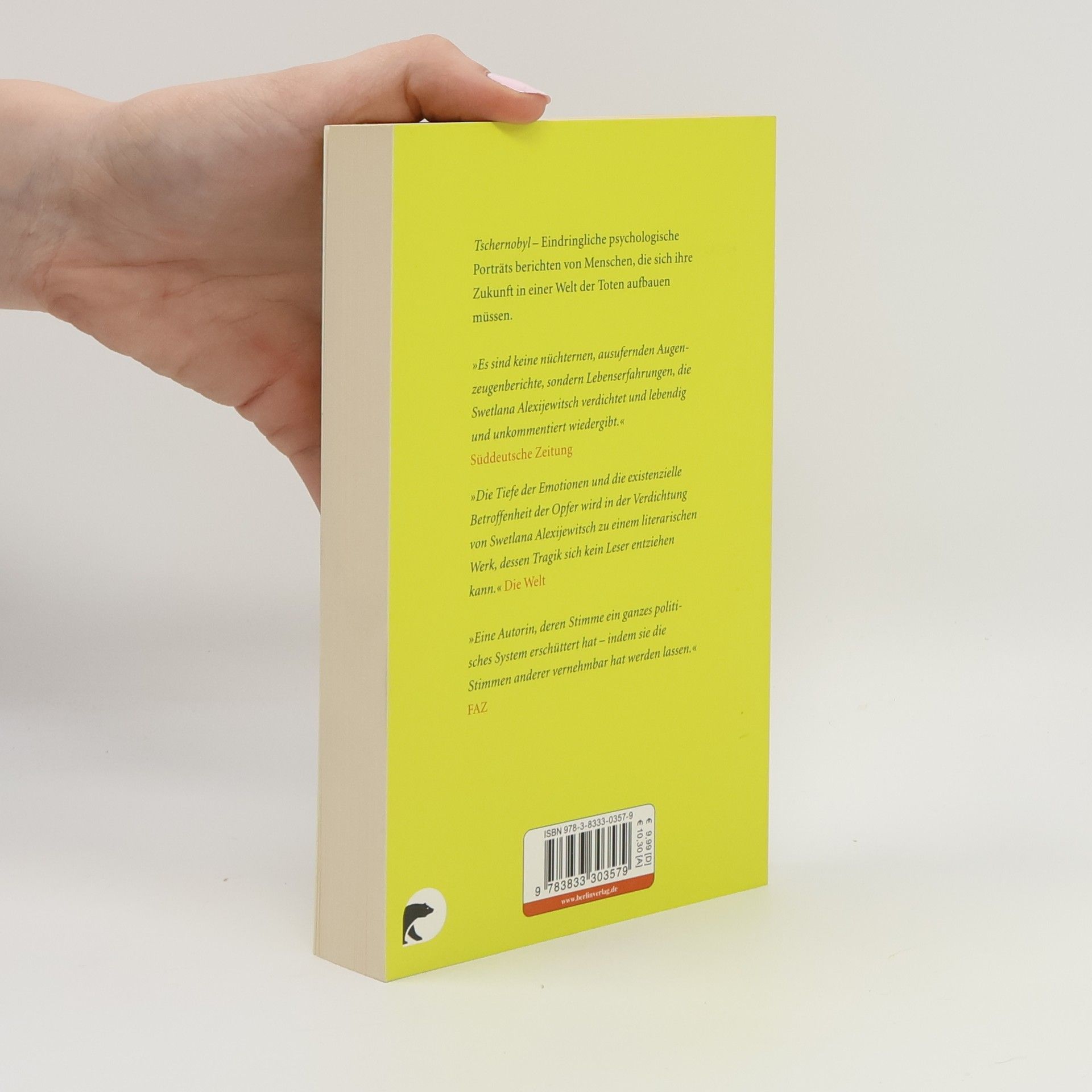 Über mehrere Jahre hat Swetlana Alexijewitsch Menschen befragt, deren Leben von der Tschernobyl-Katastrophe gezeichnet wurden. Entstanden sind eindringliche psychologische Portraits - literarisch bearbeitete Monologe - , die von Menschen berichten, die sich ihre Zukunft in einer Welt der Toten aufbauen müssen.
