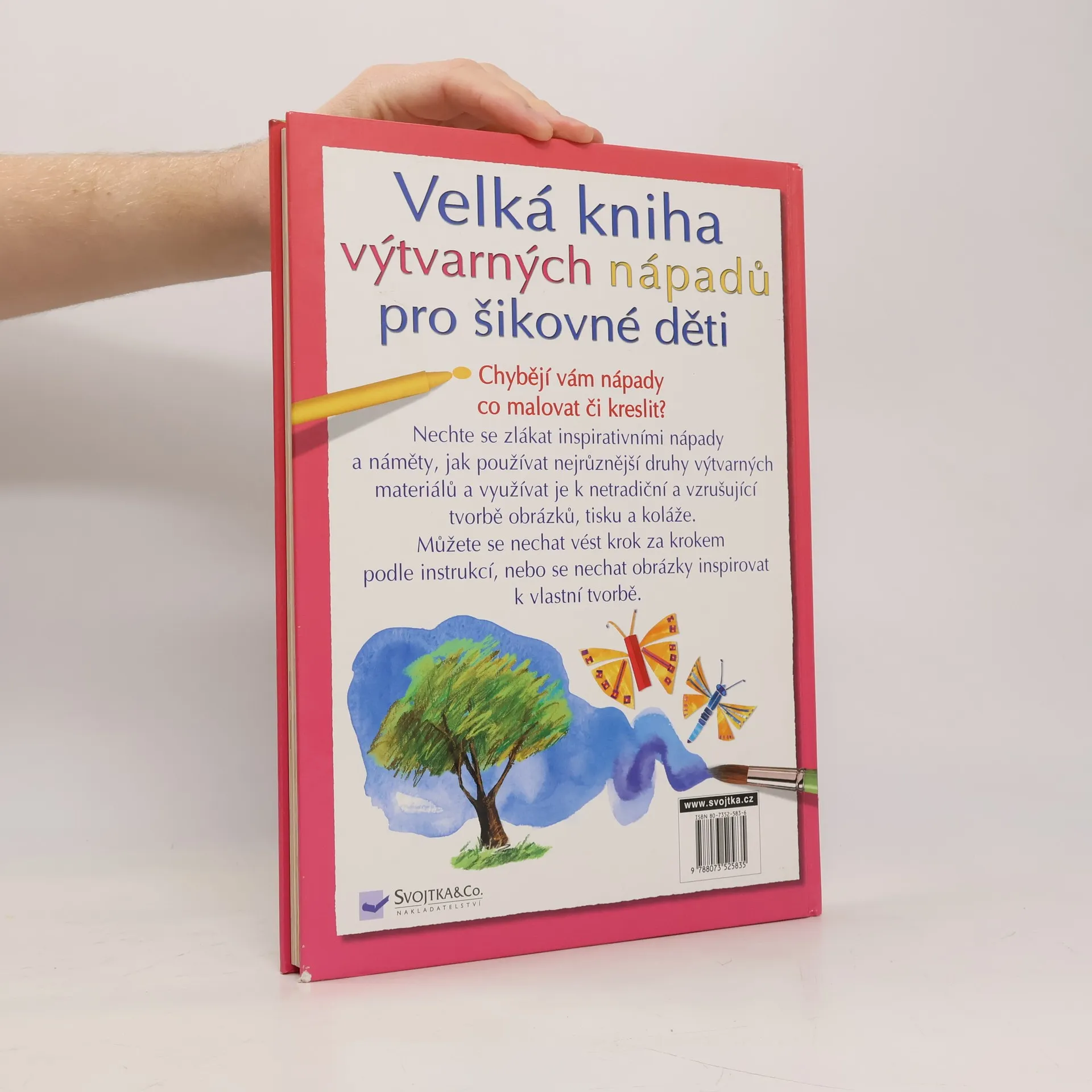Více než 280 nápadů,jak si vyzkoušet výtvarné prostředky. Chyběj í vám nápady co malovat či kreslit? Nechte se zlákat inspirativními nápady a náměty, jak používat nejrůznější druhy výtvarných materiálů a využívat je k netradiční a vzrušující tvorbě obrázků, tisku a koláže. Můžete se nechat vést krok za krokem podle instrukcí, nebo se nechat obrázky inspirovat k vlastní tvorbě.