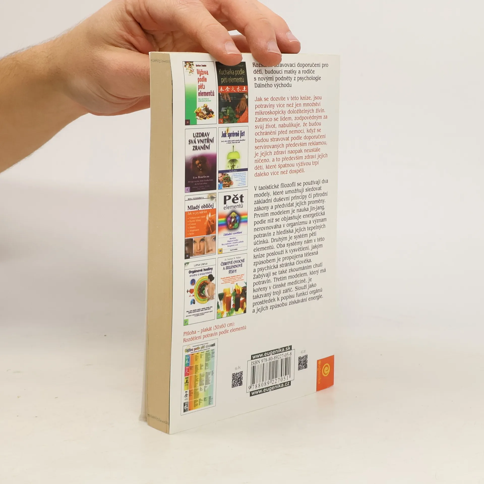Kniha pojednává o výživě z hlediska východního myšlení. Potraviny zkoumá vzhledem k jejich tepelným účinkům. Důraz klade na propojení tělesné a psychické stránky člověka. Zaměřuje se na výživu související s přípravou na rodičovství, kojením a vařením pro děti. Najdete zde množství důležitých informací, údajů, doporučení a receptů. ... celý text