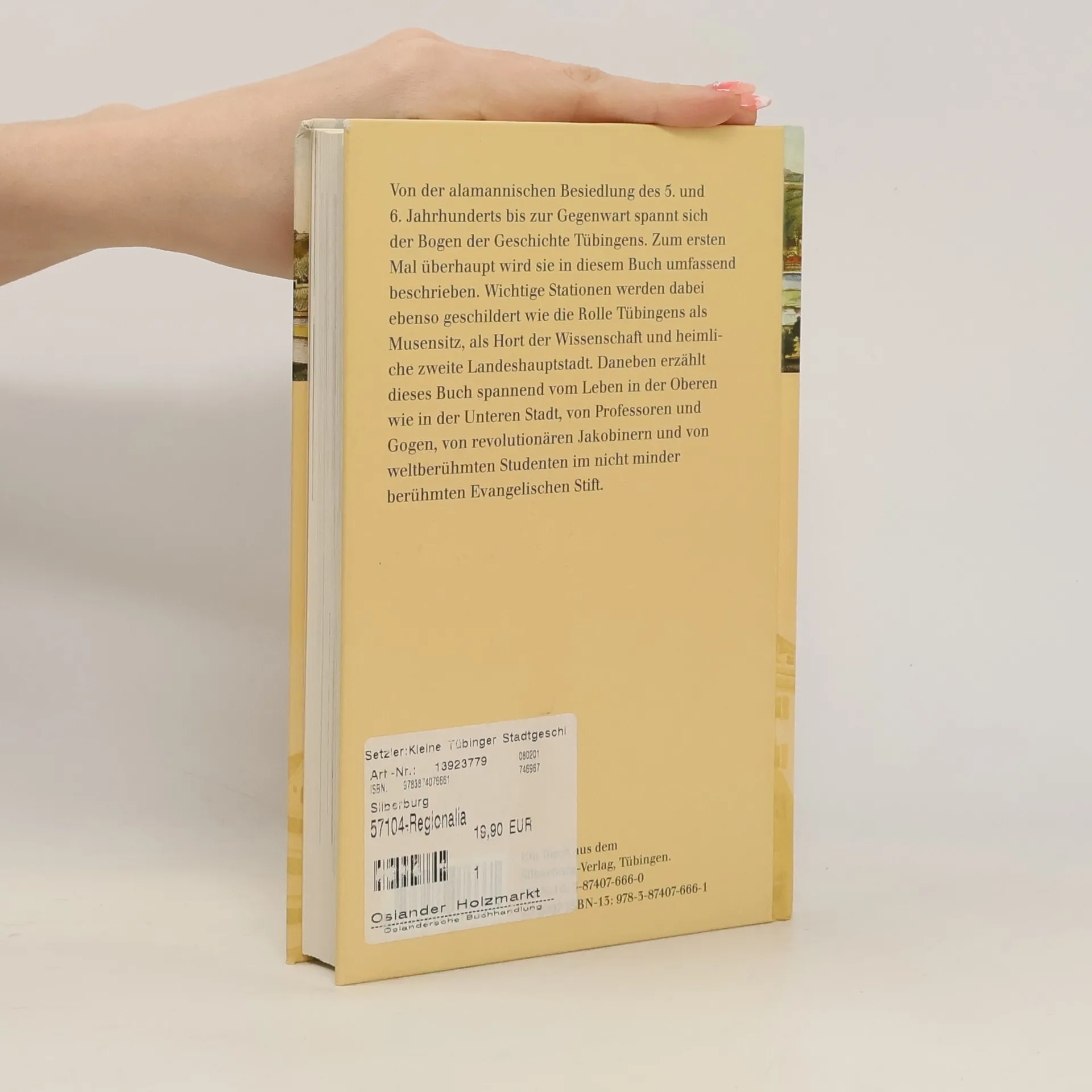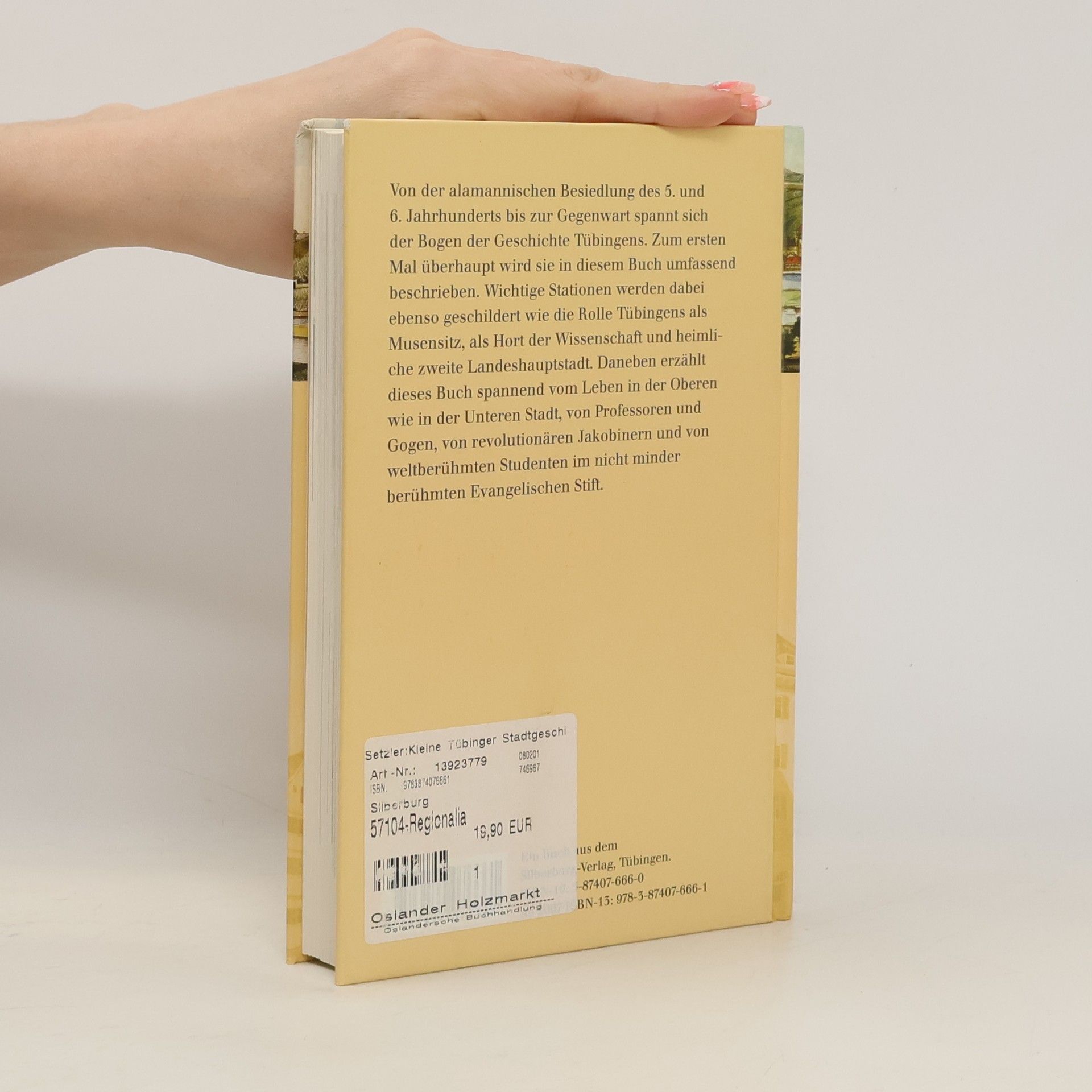 Das Buch präsentiert knapp und dennoch umfassend die Tübinger Stadtgeschichte. Die Autoren erzählen fundiert und spannend vom Leben in der Oberen wie in der Unteren Stadt, von Professoren und Gogen und von Studenten im weltberühmten Evangelischen Stift. Der zeitliche Bogen spannt sich von der alamannischen Besiedlung des 5. und 6. Jahrhunderts bis zur Gegenwart.