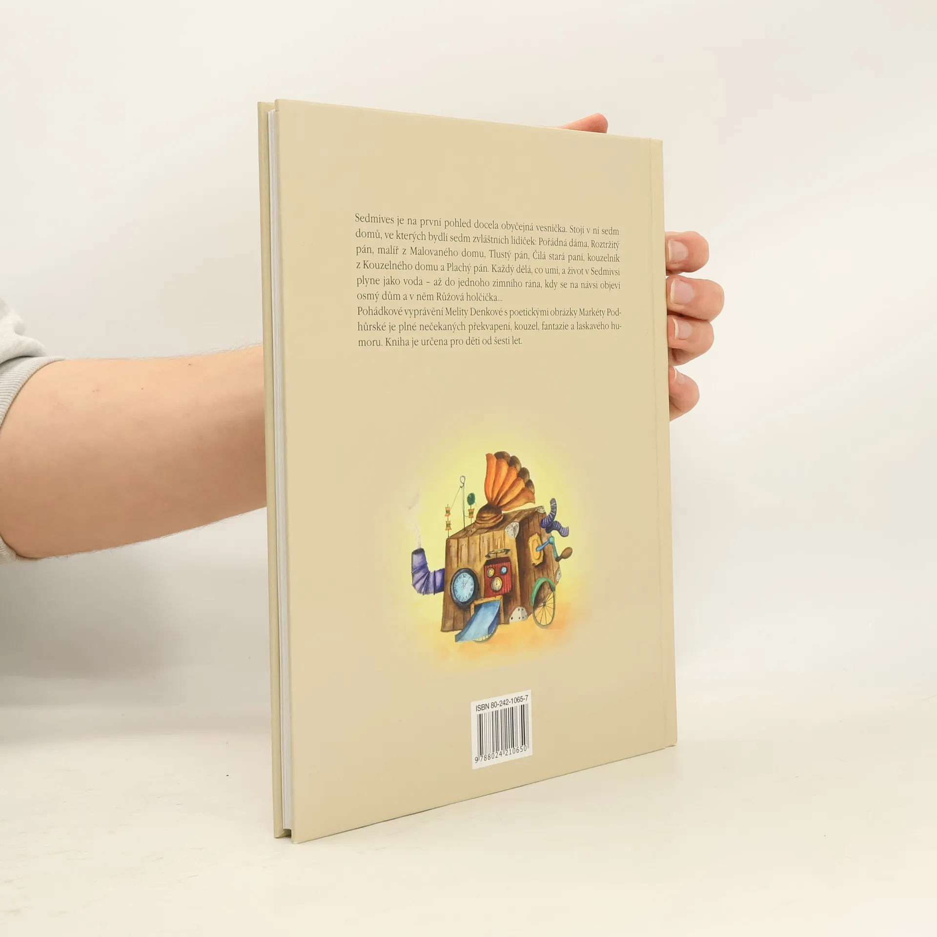 Pohádkové vyprávění o zvláštních obyvatelích vesničky Sedmives. Vhodné pro děti do deseti let. Půvabné vyprávění plné fantazie o vesničce Sedmives, kde stojí sedm domů a v každém bydlí neobyčejný člověk (Pořádná dáma, Tlustý pán, kouzelník a další). Jednoho dne se ve vsi objeví Růžová holčička a s ní osmý dům. Příjemné čtení doprovází poetické ilustrace Markéty Podhůrské.