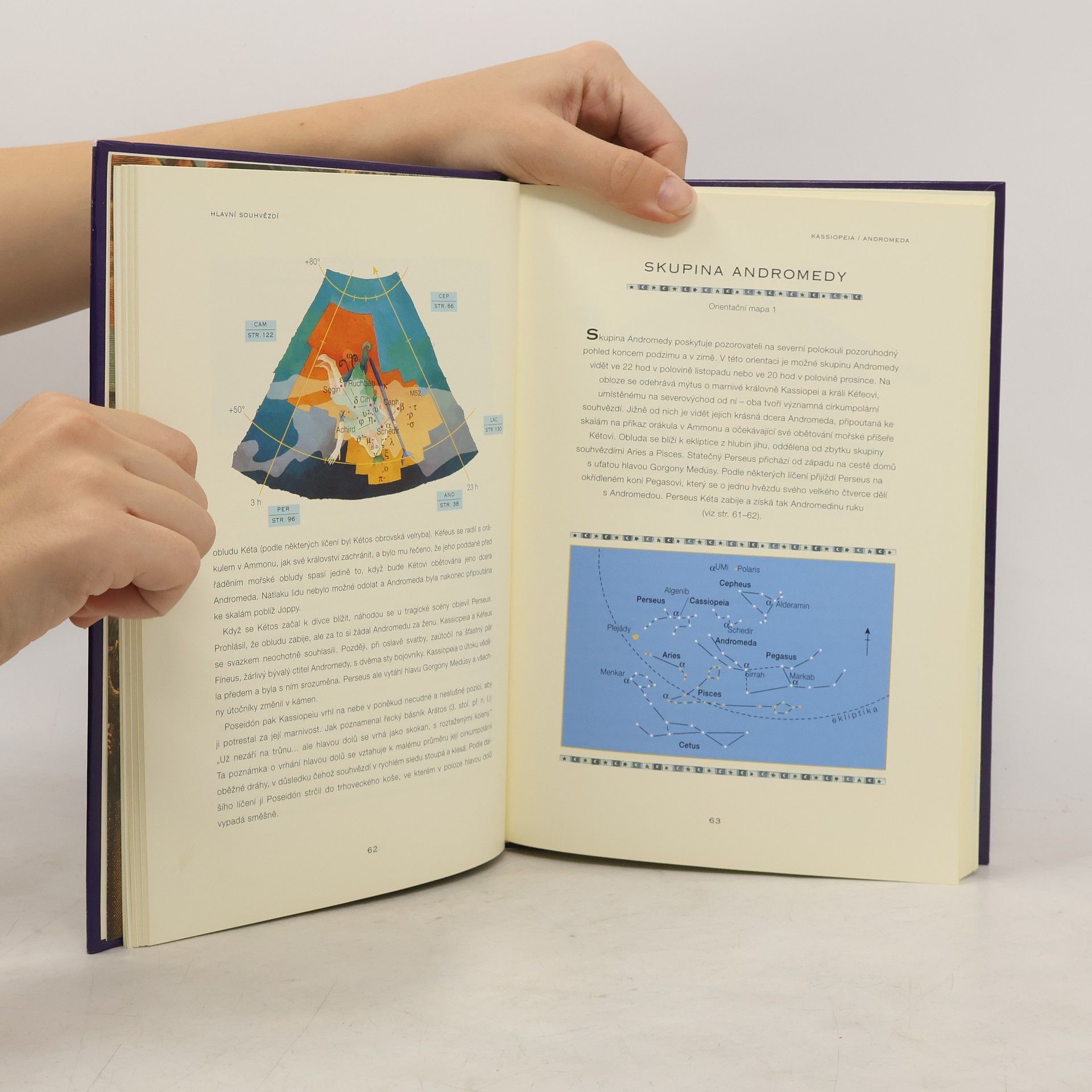 Ilustrovaný průvodce noční oblohou. Vyhledávání souhvězdí a hvězd podle snadno rozeznatelných bodů. Kniha je rozdělena na tyto části: Noční obloha (základní principy pozorování oblohy), Mapy noční oblohy (mapy noční oblohy severní a jižní polokoule), Hlavní souhvězdí (40 nejdůležitějších souhvězdí pozorovatelných pouhým okem s ilustracemi), Menší souhvězdí (48 souhvězdí), Putující hvězdy (původ jmen a mýty spojené se Sluncem, Měsícem a planetami sluneční soustavy), Dodatky (jak najít hvězdy a planey, nejvhodnější data pozorování Merkuru, hvězdné tabulky), slovníček, rejstřík, bibliografie.