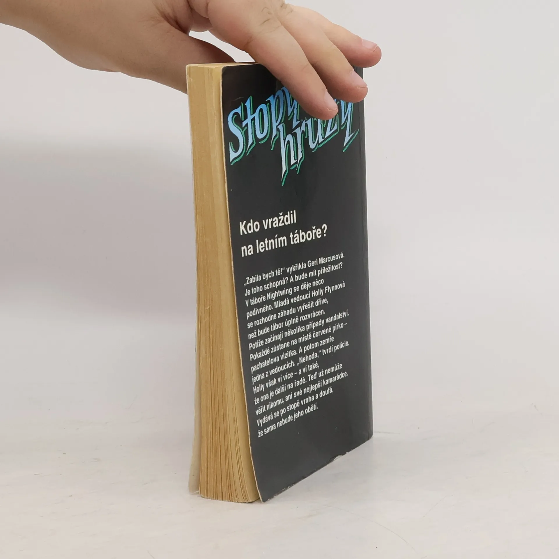 Stopy hrůzy 13, ze série Ulice strachu. „Zabila bych tě!“ vykřikla Geri Marcusová. Je toho schopná? A bude mít příležitost? V táboře Nightwing se děje něco podivného. Mladá vedoucí Holly Flynnová se rozhodne záhadu vyřešit dříve, než bude tábor úplně rozvrácen. Potíže začínají několika případy vandalství. Pokaždé zůstane na místě červené pírko – pachatelova vizitka. A potom zamře jedna z vedoucích. „Nehoda,“ tvrdí policie. Holly však ví více – a ví také, že ona je další na řadě. Teď už nemůže věřit nikomu, ani své nejlepší kamarádce. Vydává se po stopě vraha a doufá, že sama nebude jeho obětí.