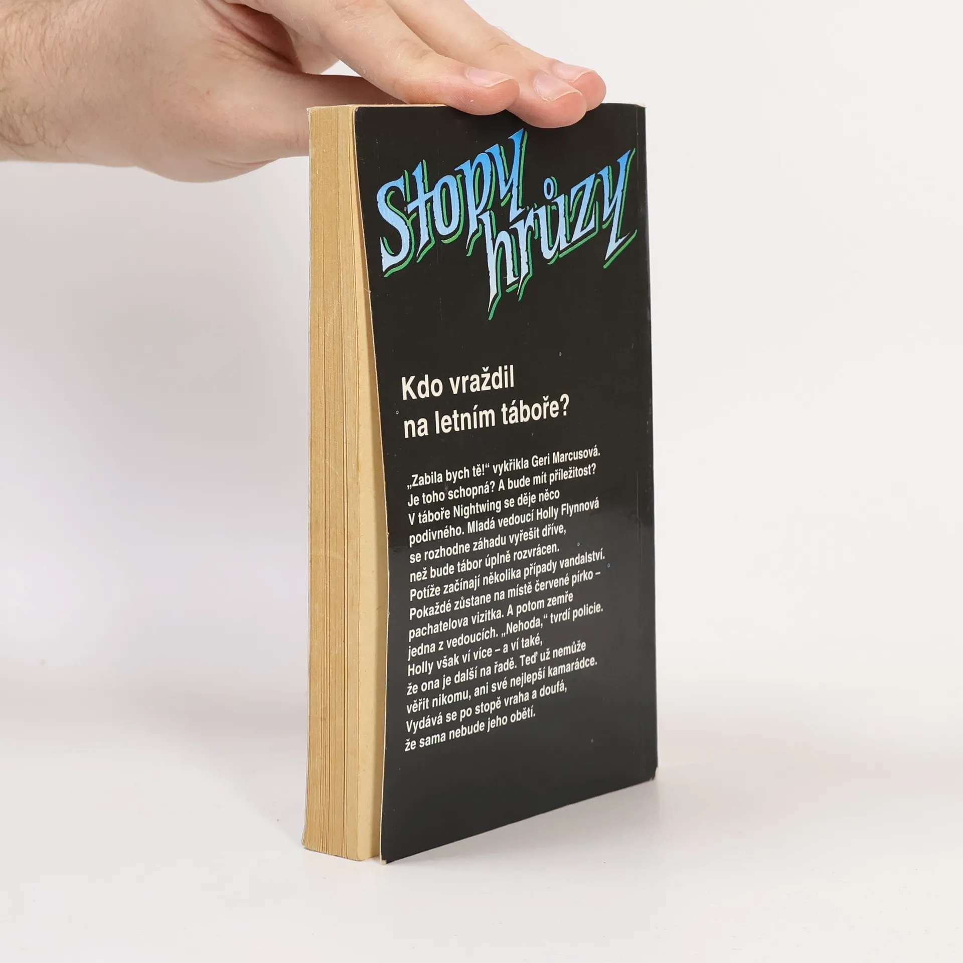 Stopy hrůzy 13, ze série Ulice strachu. „Zabila bych tě!“ vykřikla Geri Marcusová. Je toho schopná? A bude mít příležitost? V táboře Nightwing se děje něco podivného. Mladá vedoucí Holly Flynnová se rozhodne záhadu vyřešit dříve, než bude tábor úplně rozvrácen. Potíže začínají několika případy vandalství. Pokaždé zůstane na místě červené pírko – pachatelova vizitka. A potom zamře jedna z vedoucích. „Nehoda,“ tvrdí policie. Holly však ví více – a ví také, že ona je další na řadě. Teď už nemůže věřit nikomu, ani své nejlepší kamarádce. Vydává se po stopě vraha a doufá, že sama nebude jeho obětí.