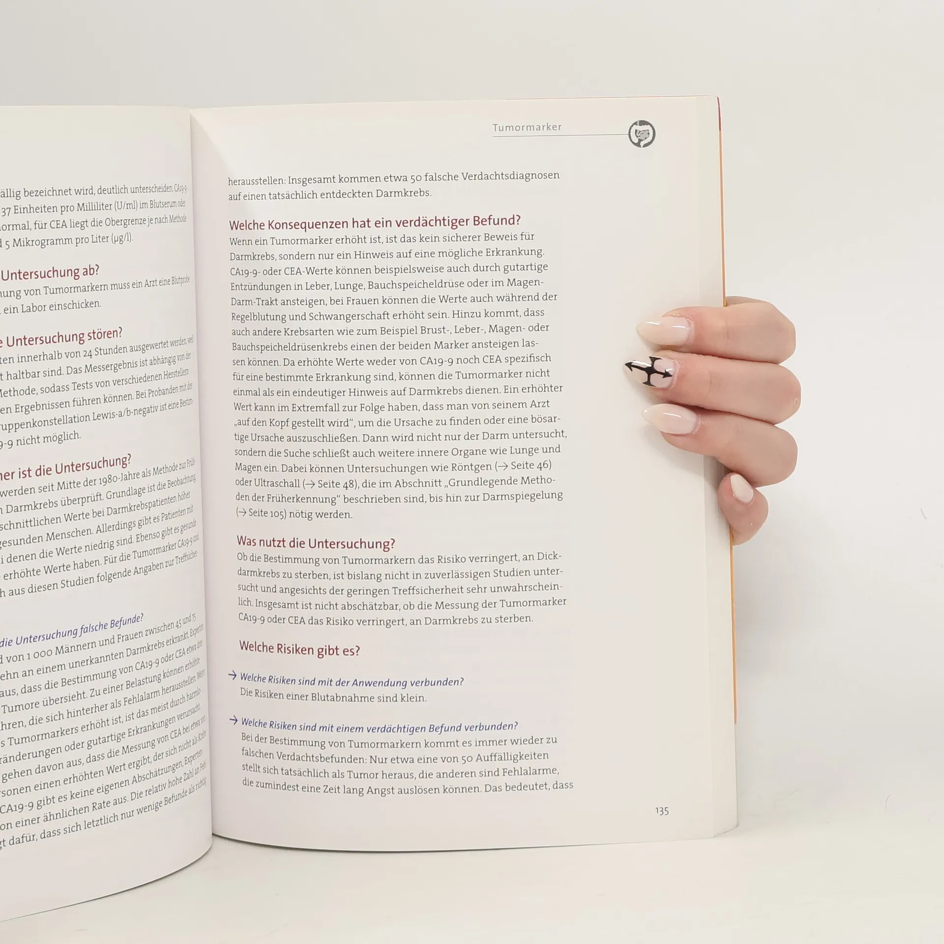 Der Angst vor Krebs versuchen viele mit unterschiedlichen Früherkennungsstrategien - ob sicher oder unnütz - zu begegnen. Erstmalig sind die gängigen Methoden zusammengestellt, erläutert und bewertet worden. Denn die Vorsorgeuntersuchungen sind nicht durchgängig ohne Risiko. Neben direkten werden auch indirekte Risiken einer Untersuchung, z. B. durch falsche Ergebnisse, in die Bewertung einbezogen. Stichwort Früherkennung: Mit der Früherkennung sollen Krankheiten so rechtzeitig erkannt werden, dass sie noch wirksam behandelt werden können. Der manchmal verwendete Begriff Vorsorge ist sachlich nicht korrekt, denn die Vorsorge will das Auftreten einer Krankheit verhindern.
