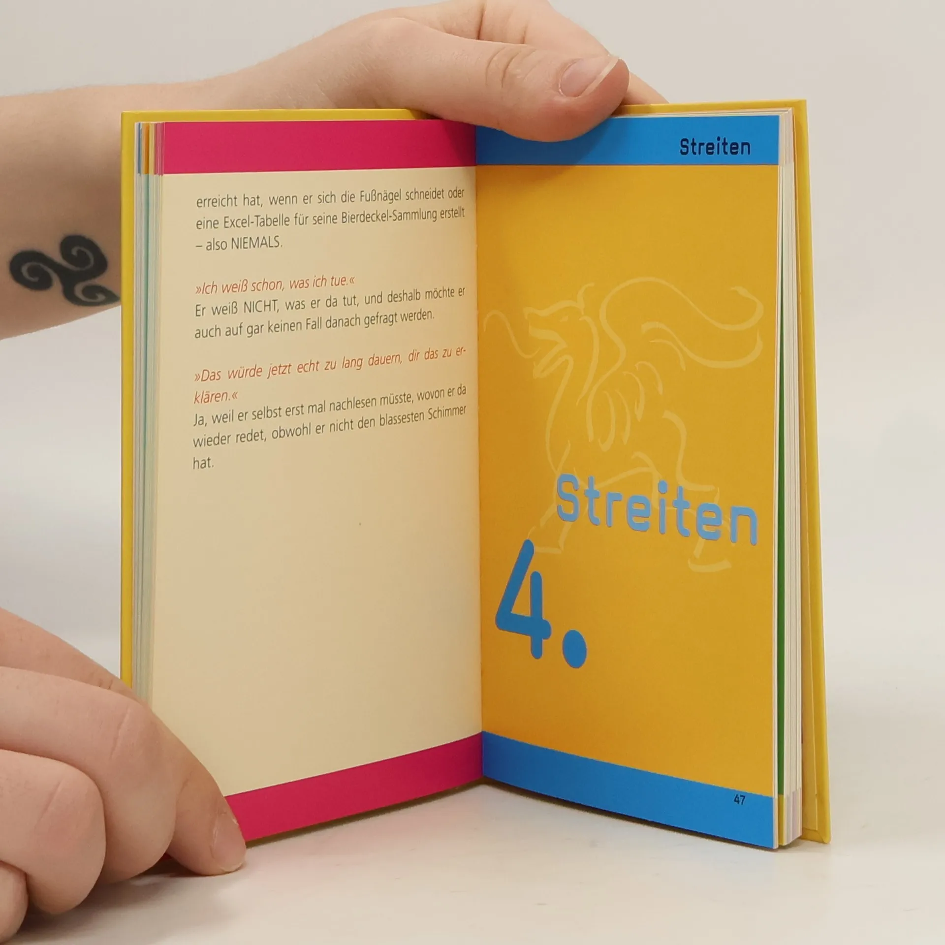 „Mann-Deutsch/Deutsch-Mann“ ist der ultimative Sprachführer zum besseren Verständnis des starken Geschlechts. Die zwei erfahrenen Männerversteherinnen Susanne Fröhlich und Constanze Kleis erklären, wie Männer wirklich ticken. Susanne Fröhlich und Constanze Kleis entschlüsseln den Sprach-Code der Männer: Was Männer so von sich geben, ist Frauen meist so rätselhaft wie der Gesang der Buckelwale. Kein Wunder: bekanntlich hat ein Mann ja einen Vorrat von 2000 Wörtern pro Tag. Wenn der erschöpft ist, greift der Mann notgedrungen auf Laute zurück. Mit „Mann-Deusch/Deutsch-Mann“ lernen Sie endlich, wie Männer ticken. Wenn Sie ihren Mann danach immer noch nicht verstehen, schenken Sie ihm doch „Frau-Deutsch/Deutsch-Frau“, Sie sollen sich schließlich nicht alleine anstrengen, die Kommunikation zwischen ihnen zu verbessern.