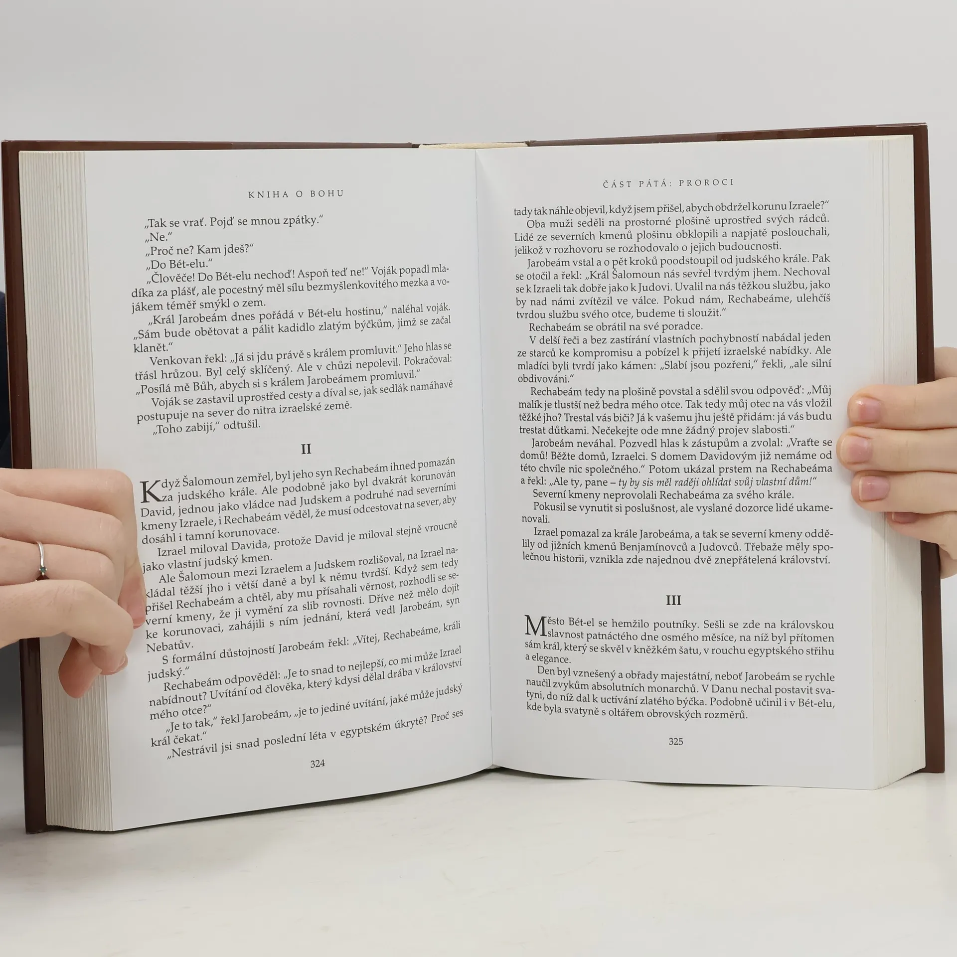 Kniha o Bohu je románovým vyprávěním o putování vyvoleného židovského národa do země zaslíbené, o vzniku státu Izrael a příchodu Mesiáše. Z archetypálních symbolů Starého i Nového zákona - proroků, králů a vojevůdců, jejich partnerek a dcer, Ježíše Krista a jeho následovníků - se ve Wangerinově podání stávají znovu postavy z masa a krve, muži a ženy, kteří věří, touží, bojují a trpí. Pradávný biblický příběh tak získává rozměry moderní prózy, jejímž cílem je zachytit úsvit křesťansko-židovské civilizace a kořeny, z nichž vyrůstá naše dnešní společnost.