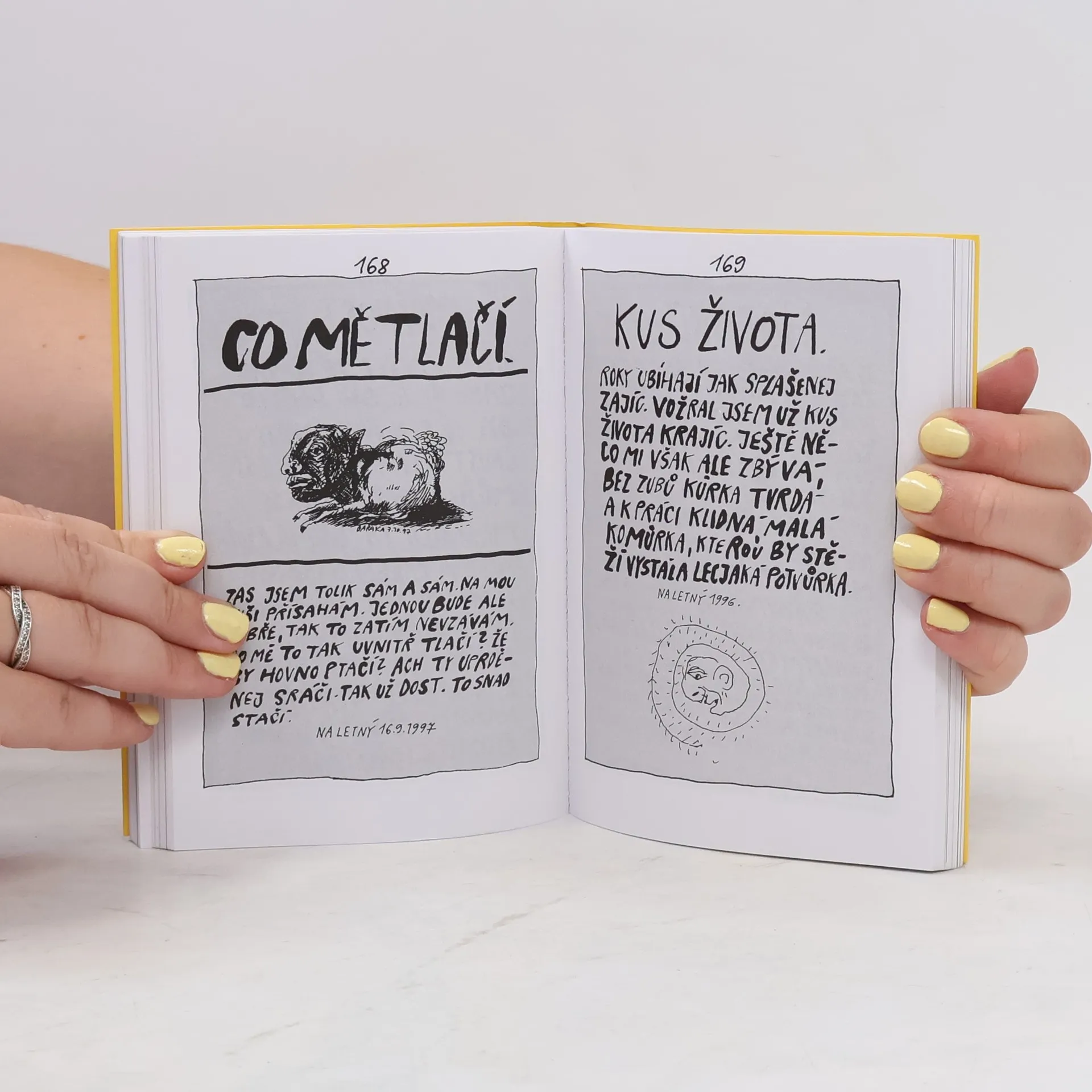 Humorné a satirické verše, doprovázené svéráznou grafickou úpravou a ilustracemi. Nedostatky člověka předkládá autor s jakousi ležérní laskavostí, v níž se projevují i jeho fyziognomické nedostatky. Snad proto člověka zobrazuje jako skřeta v různých pozicích, zahleděného a uzavřeného do sebe a nevnímajícího svět okolo. Autorův jazyk i forma potvrzují jeho velký sklon k jadrné recesi, znásobené ještě záměrnými gramatickými chybami.... celý text