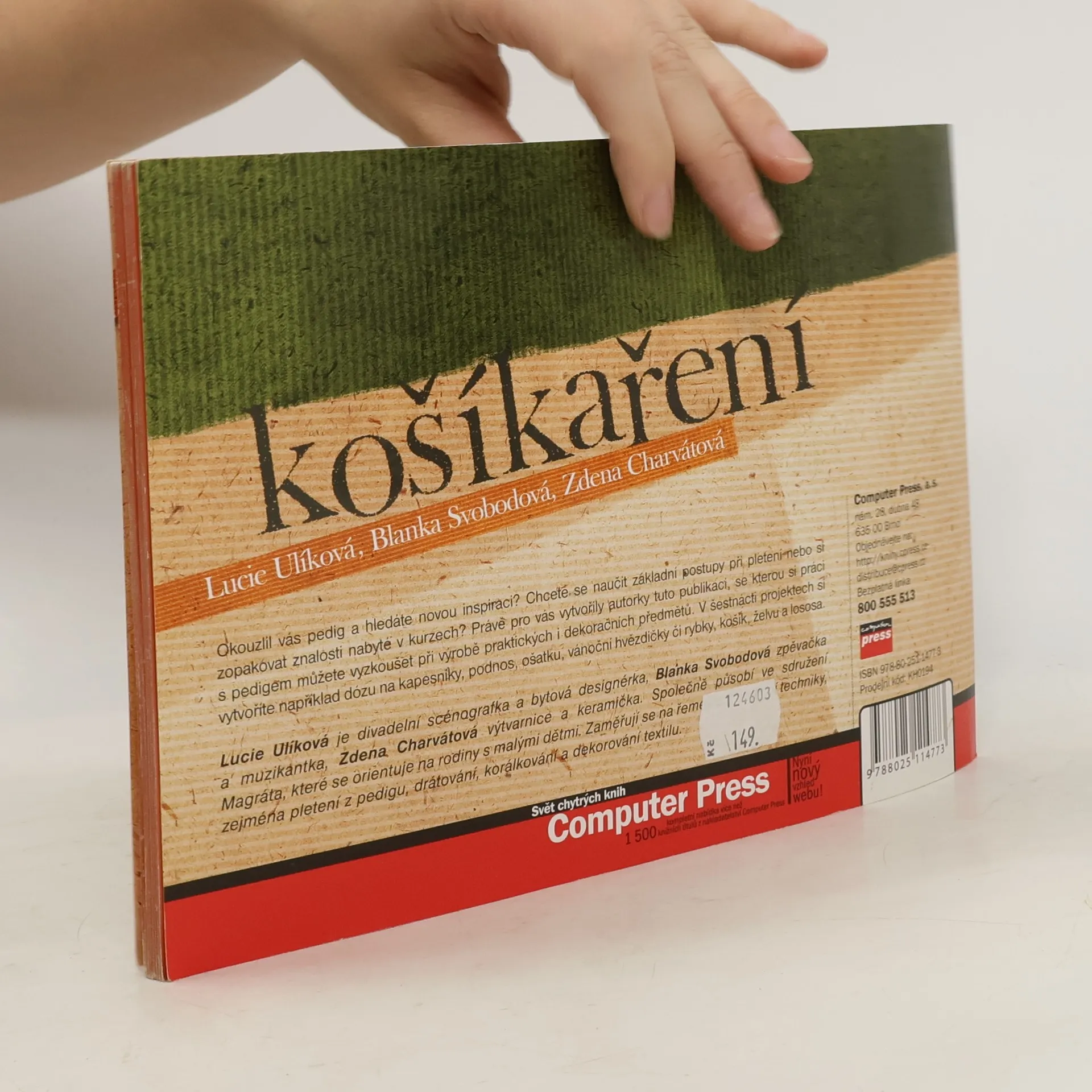 Okouzlil vás pedig a hledáte novou inspiraci? Chcete se naučit základní postupy při pletení či si zopakovat znalosti nabyté v kurzech? Právě pro vás vytvořily autorky tuto publikaci, se kterou si technologii práce s pedigem můžete vyzkoušet při výrobě praktických i dekoračních předmětů ubrouskovníku, podnosu, ošatky, košíku, zásobníku na kapesníky, želvy, létajícího balonu či ptáčků. Okouzlil vás pedig a hledáte novou inspiraci? Chcete se naučit základní postupy při pletení či si zopakovat znalosti nabyté v kurzech? Právě pro vás vytvořily autorky tuto publikaci, se kterou si práci s pedigem můžete vyzkoušet při výrobě praktických i dekoračních předmětů. V šestnácti projektech si vytvoříte například dózu na kapesníky, podnos, ošatku, vánoční hvězdičky či rybky, košík, želvu a lososa. O autorkách: Lucie Ulíková je divadelní scénografka a bytová designérka, Blanka Svobodová zpěvačka a muzikantka, Zdena Charvátová výtvarnice a keramička. Společně působí ve sdružení Magráta, které se orientuje na rodiny s malými dětmi. Zaměřují se na řemesla a tradiční techniky, zejména pletení z pedigu, drátování, korálkování a dekorování textilu.