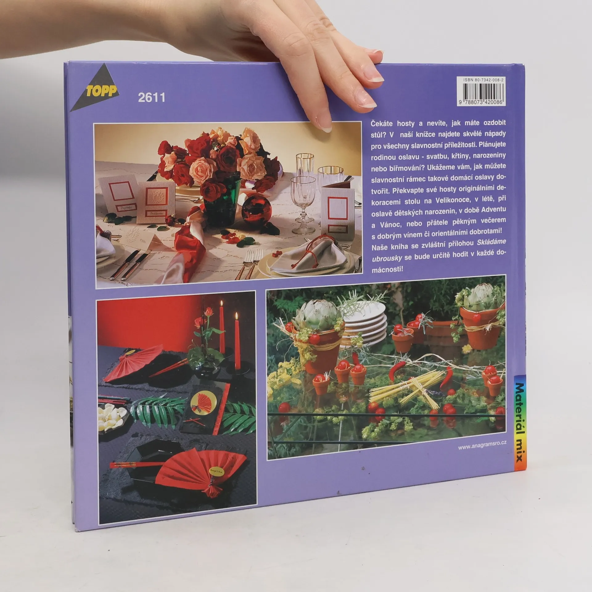 Podtitul: nejkrásnější dekorace na váš stůl! Čekáte hosty a nevíte, jak máte ozdobit stůl? V naší knížce najdete skvělé nápady pro všechny slavnostní příležitosti. Plánujete rodinou oslavu - svatbu, křtiny, narozeniny nebo biřmování? ukážeme vám, jak můžete slavnostní rámec takové domácí oslavy dotvořit. Překvapte své hosty originálními dekoracemi stolu. Naše kniha se zvláštní přílohou Skládáme ubrousky se bude určitě hodit v každé domácnosti.