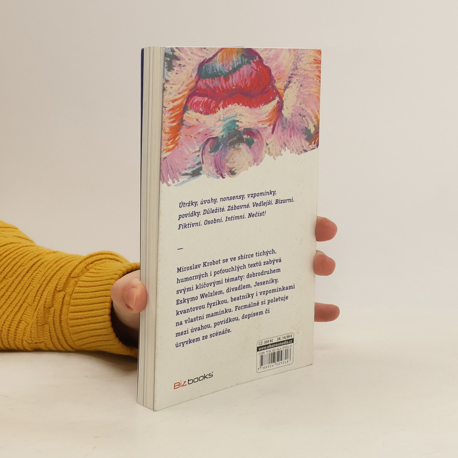 Útržky, úvahy, nonsensy, povídky. Myslí charismatického režiséra a herce putují fascinující postavy i vzpomínky: Český dobrodruh Eskymo Welzl si podává dveře s Jackem Kerouacem, Rolling Stones s maminčiným životopisem. Divokou krásu Jeseníků střídají parky Olomouce či divadlo v Chebu. Osobitý styl jednoho z nejvýraznějších mužů českého divadla a filmu vám odemkne dveře do světa fantazie, v němž je radost se ztratit.