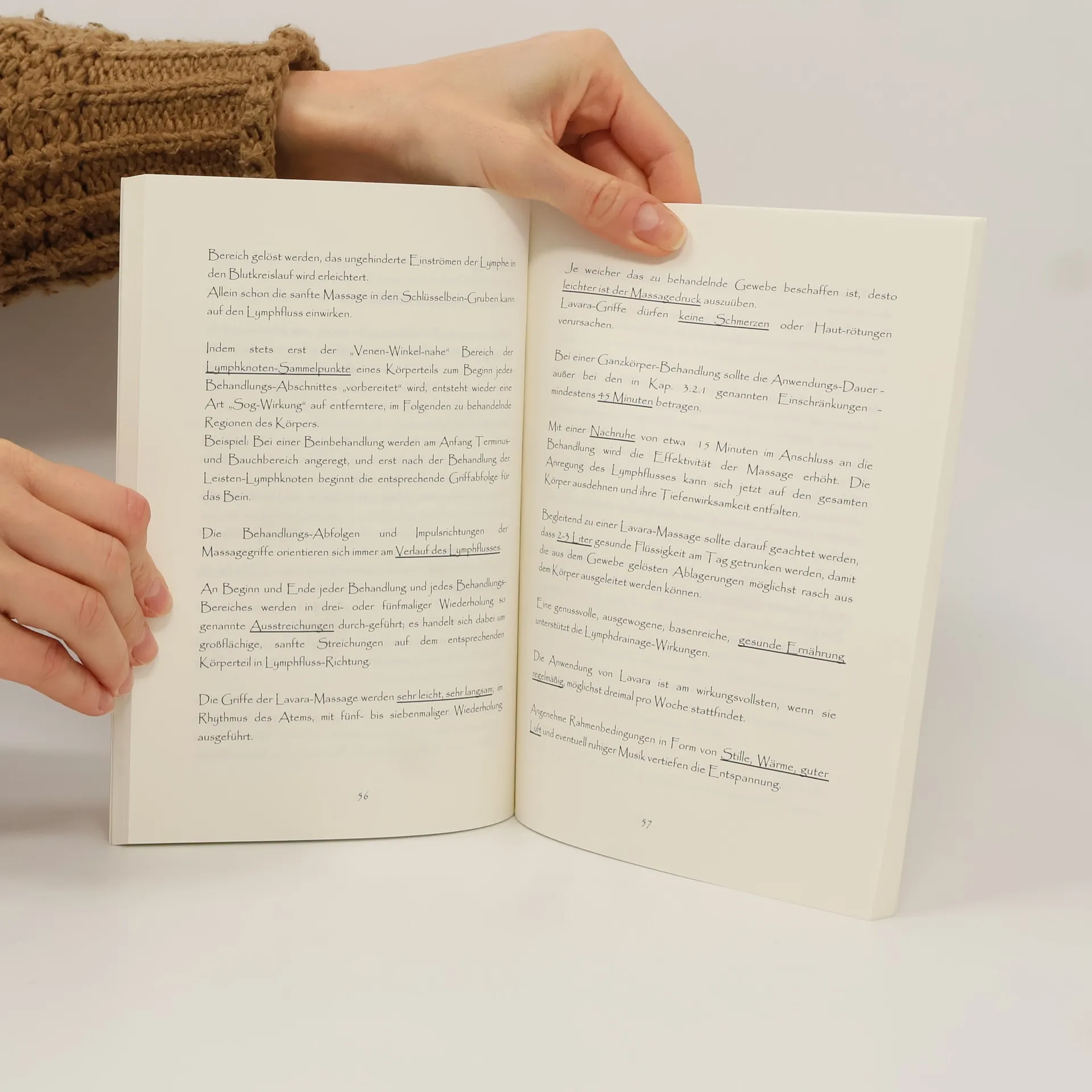Lymphdrainage, wohl eine der sanftesten aller Massagen, ermoglicht eine "innere Reinigung" des Korpers: Streichend kreisende Massagegriffe fordern den Fluss der Lymphe und wirken damit wohltuend auf Bindegewebe, Haut, Muskulatur und Gelenke. Eine Lavara-Massage verbindet die Prinzipien der Lymphdrainage mit bewusster Atmung. ..".In diesem Buch erlautert Dorothee Grotmann nicht nur ihre sanfte, aber hochst wirkungsvolle Form der Massage, sondern erklart auch sehr anschaulich die Vorgange innerhalb des Korpers und bringt dem Leser auf sehr liebevolle Art die grosse Bedeutung des korpereigenen Lymphsystems ins Bewusstsein." SEIN, Berli