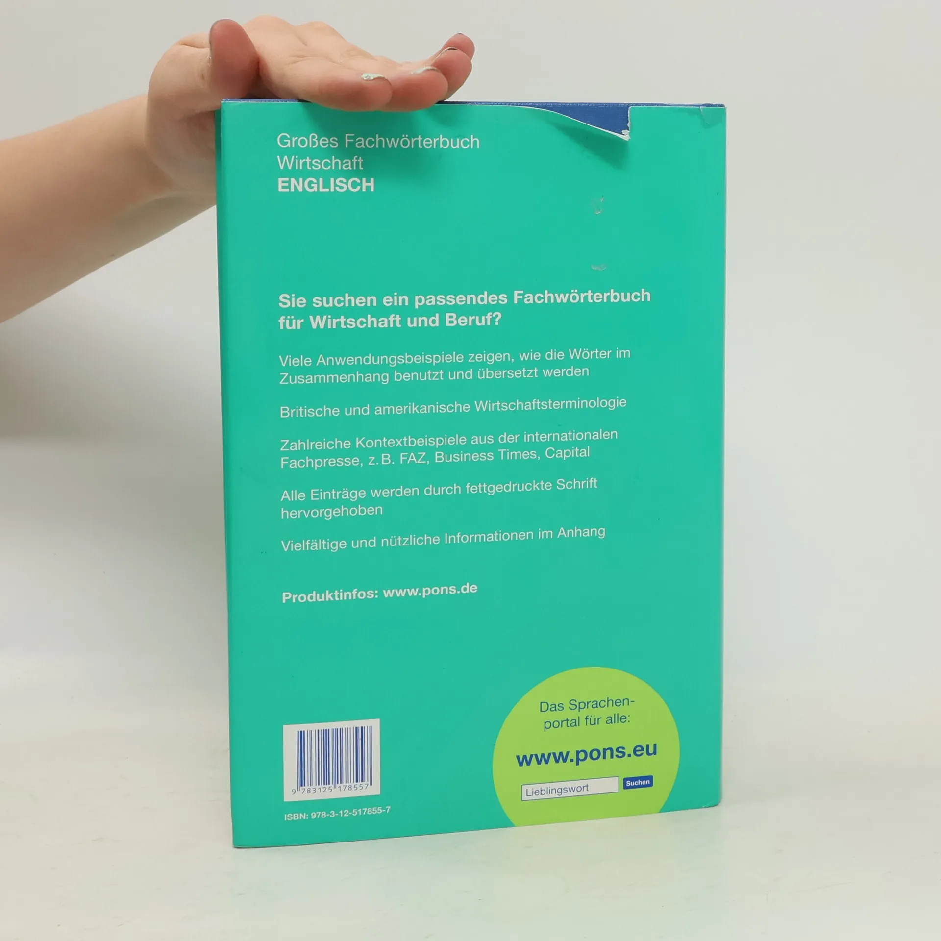 Großes Fachwörterbuch für Wirtschaft und Beruf: Rund 50.000 Stichwörter und Wendungen aus der Wirtschaft Britische und amerikanische Wirtschaftsterminologie Zahlreiche Kontextbeispiele aus der internationalen Fachpresse Vielfältige, nützliche Informationen im Anhang Ideal für Wirtschaft und Beruf geeignet.