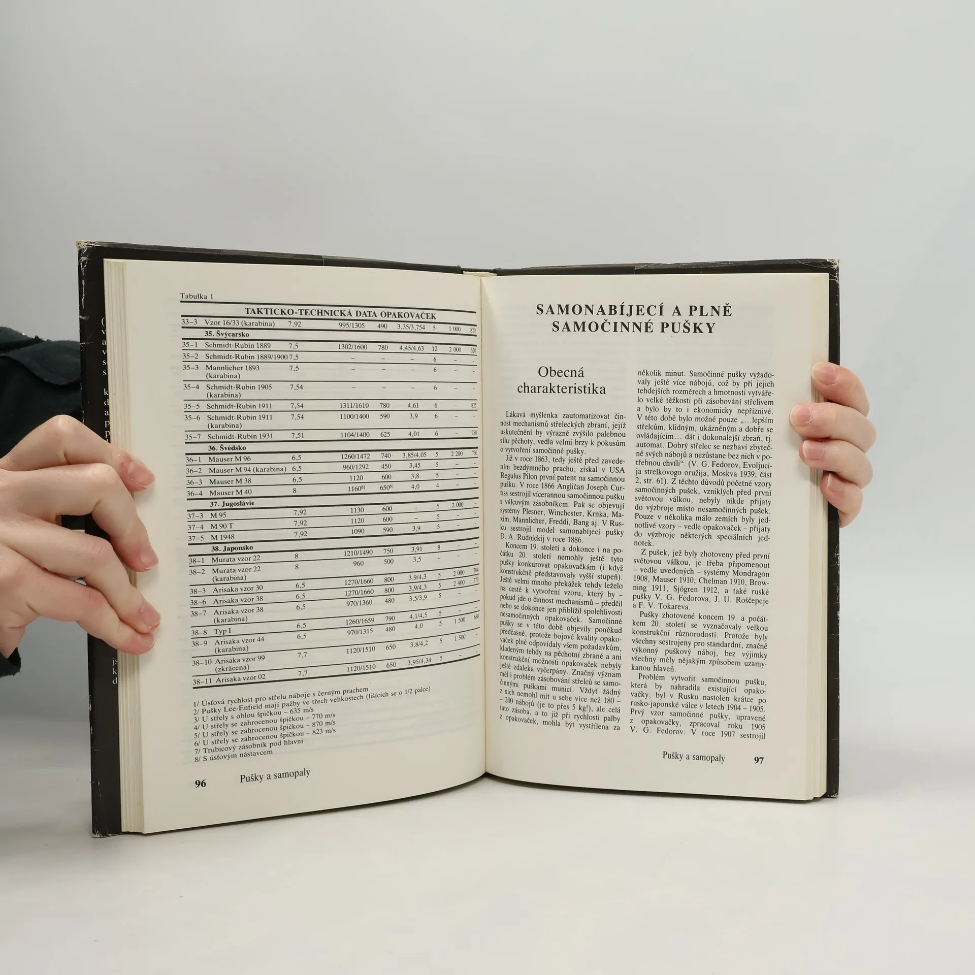 Kniha Pušky a samopaly je rozdělena do tří částí. V první jsou popsány a vyobrazeny opakovačky a samočinné pušky první generace, používající puškové náboje a sestrojené ještě koncem 19. století. Druhá část knihy je věnována samopalům, které se značně rozšířily v období druhé světové války a jejichž zdokonalování pokračuje dodnes. Třetí část hovoří o samočinných puškách druhé generace - automatech (útočných puškách) - současně nejrozšířenější střelecké zbrani, nacházející se ve výzbroji mnoha států a používající většinou náboje střední nebo snížené balistické výkonnosti. Jsou zde popsány i nepříliš početné vzory samočinných karabin z poválečného období. Přílohy obsahují údaje popisující používané náboje a ráže střeleckých zbraní, nábojové pásky a nábojové rámečky, bodáky a další dodatky.... celý text