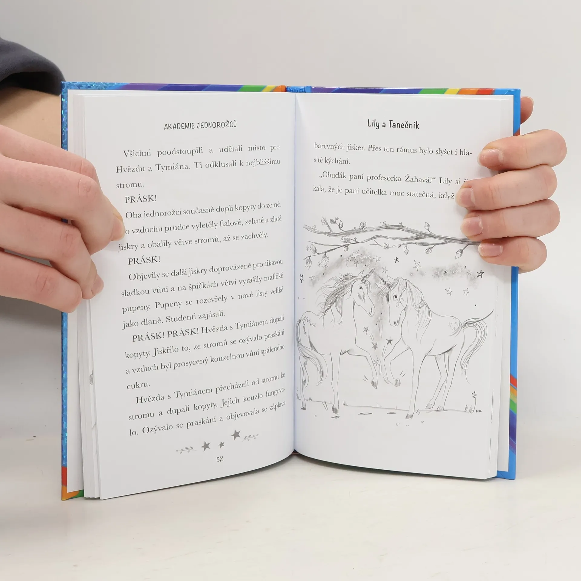Lily je na Akademii jednorožců tak šťastná! Miluje svého laskavého a starostlivého jednorožce Tanečníka. Jen by si přála, aby se tolik nebála, když mu sedí na hřbetě a on s ní uhání a skáče stejně rychle jako jejich přátelé. Když ale stromy kolem Třpytivého jezera náhle začnou umírat, Lily musí překovat své obavy a vydat se na napínavé dobrodružství, aby našla lék! Kniha je určena dětem od 7 let.