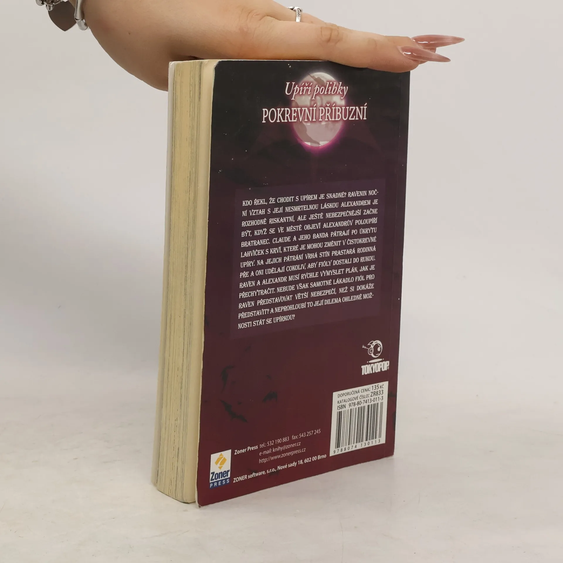 Kdo řekl, že chodit s upírem je snadné? Ravenin noční vztah s její nesmrtelnou láskou Alexandrem je rozhodně riskantní, ale ještě nebezpečnější začne být, když se ve městě objeví Alexandrův poloupíří bratranec. Claude a jeho banda pátrají po úkrytu lahviček s krví, které je mohou změnit v čistokrevné upíry. Na jejich pátrání vrhá stín prastará rodinná pře a oni udělají cokoliv, aby fióly dostali do rukou. Raven a Alexandr musí rychle vymyslet plán, jak je přechytračit. Nebude však samotné lákadlo fiól pro Raven představovat větší nebezpečí, než si dokáže představit? A neprohloubí to její dilema ohledně možnosti stát se upírkou?