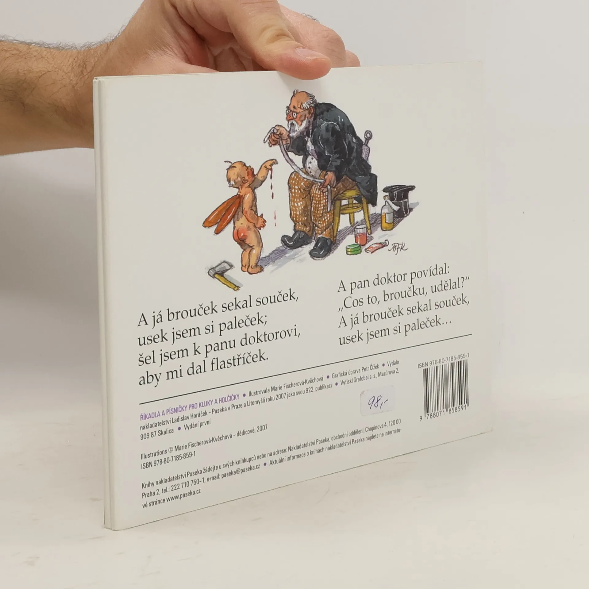 To nejlepší z lidové poezie pro nejmenší přinášíme ve formě leporela s obrázky oblíbené ilustrátorky dětských knížek Marie Fischerové-Kvěchové.Autorka:Marie Fischerová-Kvěchová (1892–1984) absolvovala Uměleckoprůmyslovou školu v Praze a věnovala se převážně ilustrování knížek pro děti. Velkým inspiračním zdrojem pro ni byl život dítěte a lidová kultura.