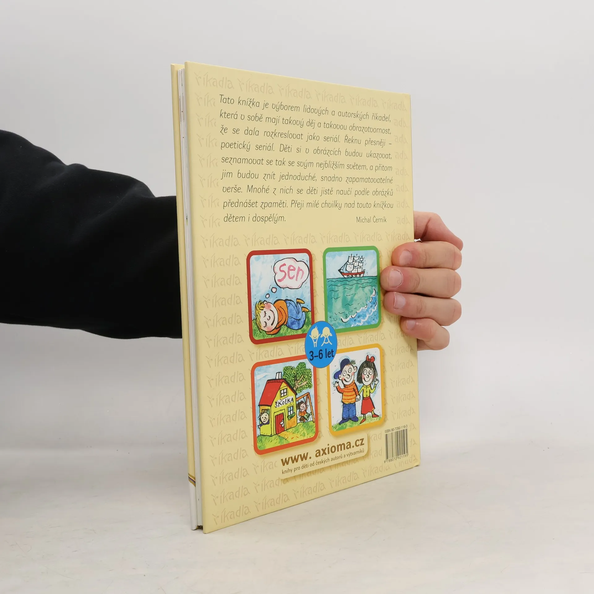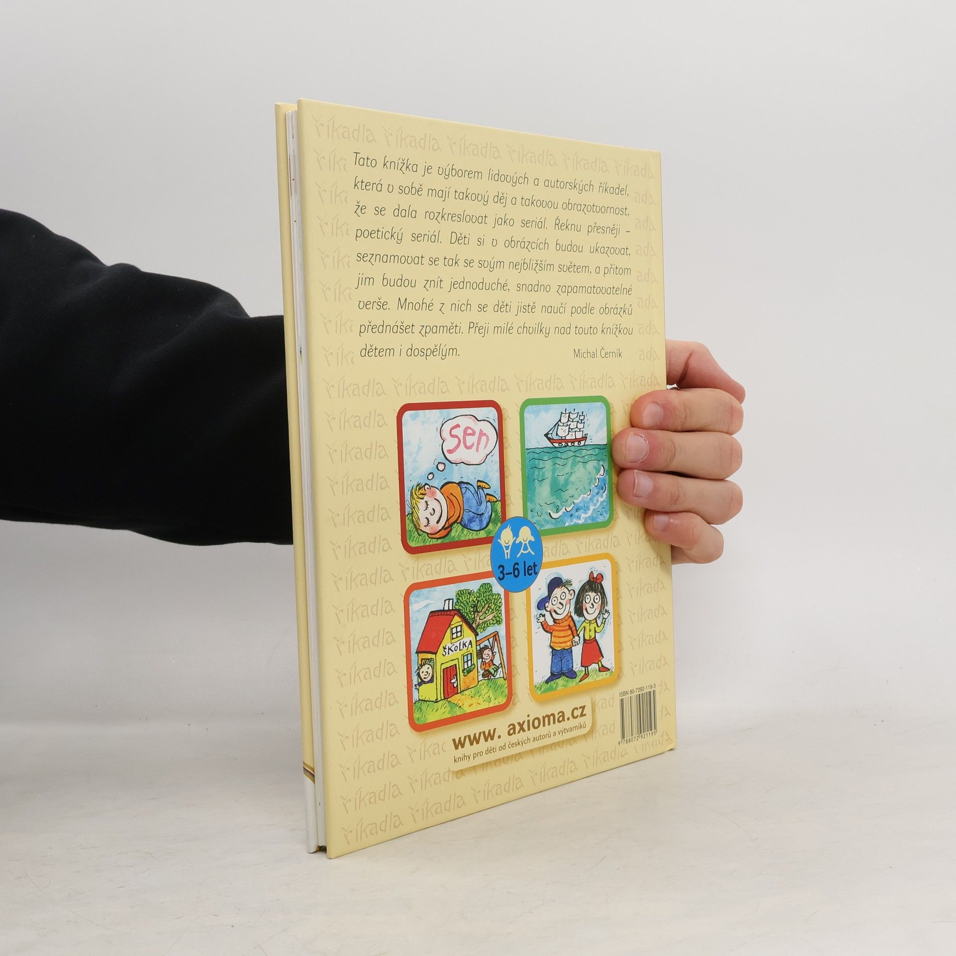 Tato knížka je výborem lidových a autorských říkadel, která v sobě mají tajový děj a takovou obrazotvornost, že se dala rozkreslovat jako seriál. Děti si v obrazcxích budou ukazovat, seznamovat se tak svým nejbližším světem, a přitom jim budou znít jednoduché, snadno zapamatovatelné verše.