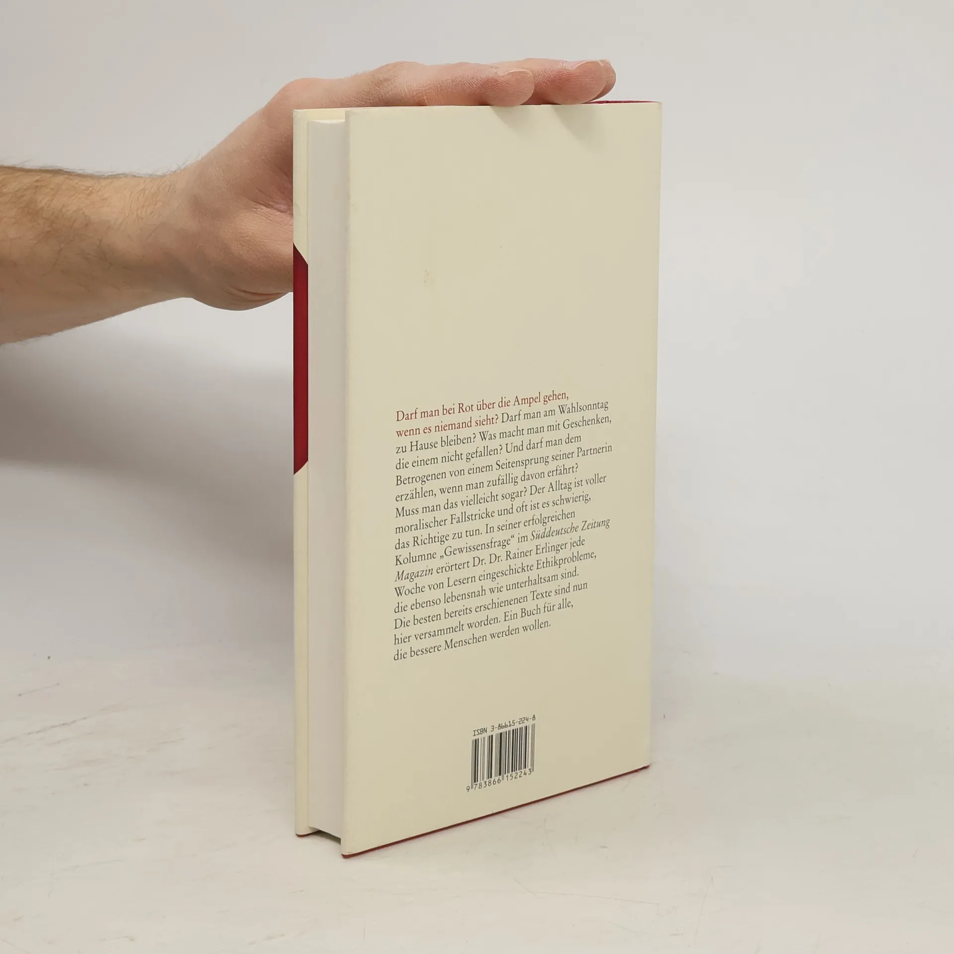 Darf man bei Rot über die Ampel gehen, wenn es niemand sieht? Darf man am Wahlsonntag zu Hause bleiben? Was macht man mit Geschenken, die einem nicht gefallen? Und darf man dem Betrogenen von einem Seitensprung seiner Partnerin erzählen, wenn man zufällig davon erfährt? Muss man das vielleicht sogar? Der Alltag ist voll mit moralischen Fallstricken und oft ist es schwierig, das Richtige zu tun. In seiner erfolgreichen Kolumne „Gewissensfrage“ im Süddeutsche Zeitung Magazin erörtert Dr. Dr. Rainer Erlinger jede Woche von Lesern eingeschickte Ethikprobleme, die ebenso lebensnah wie unterhaltsam sind. Die besten bereits erschienenen Texte sind nun hier versammelt worden. Ein Buch für alle, die bessere Menschen werden wollen.