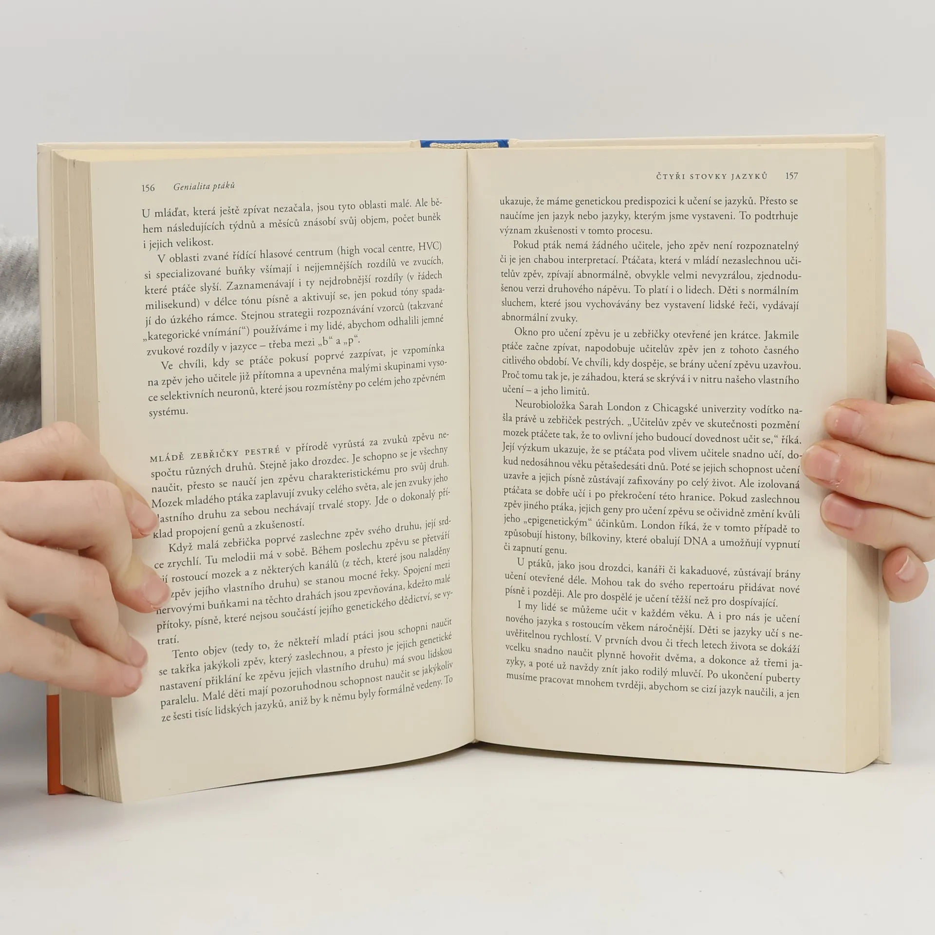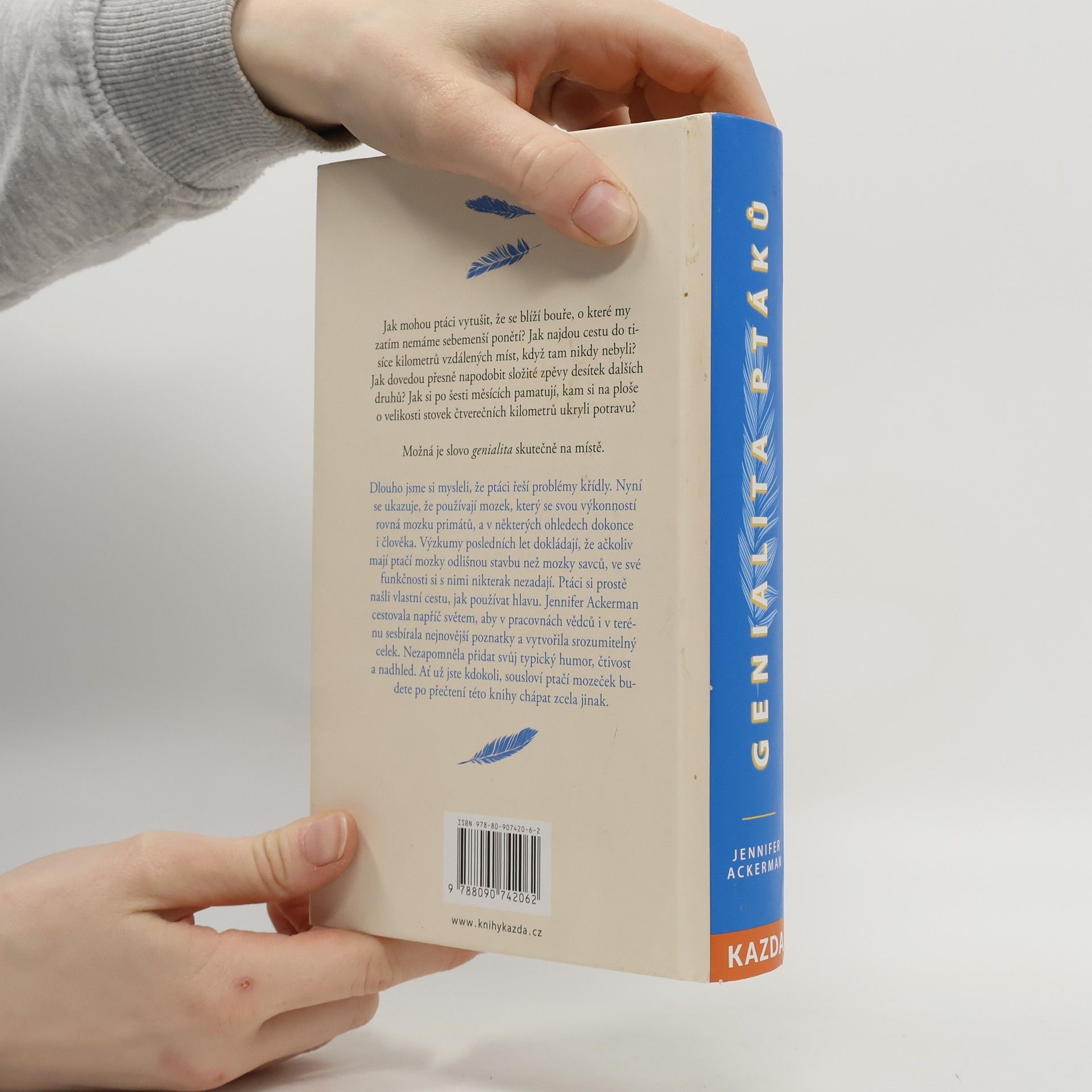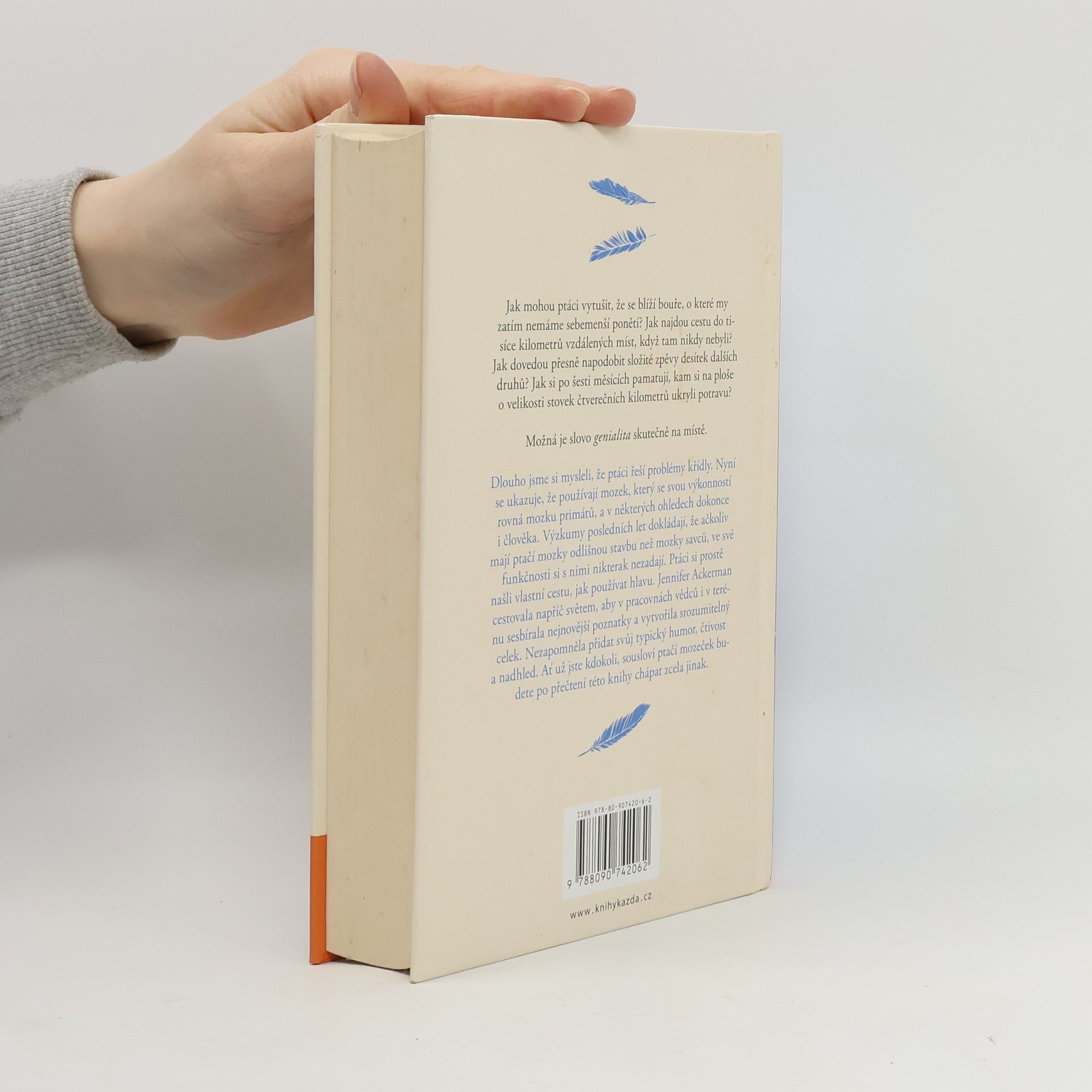 Jak mohou ptáci vytušit, že se blíží bouře, o které my zatím nemáme sebemenší ponětí? Jak najdou cestu do tisíce kilometrů vzdálených míst, když tam nikdy nebyli? Jak dovedou přesně napodobit složité zpěvy desítek dalších druhů? Jak si po šesti měsících pamatují, kam si na ploše o velikosti stovek čtverečních kilometrů ukryli potravu? Možná je slovo genialita skutečně na místě. Dlouho jsme si mysleli, že ptáci řeší problémy křídly. Nyní se ukazuje, že používají mozek, který se svou výkonností rovná mozku primátů, a v některých ohledech dokonce i člověka. Výzkumy posledních let dokládají, že ačkoliv mají ptačí mozky odlišnou stavbu než mozky savců, ve své funkčnosti si s nimi nikterak nezadají. Ptáci si prostě našli vlastní cestu, jak používat hlavu. Jennifer Ackerman cestovala napříč světem, aby v pracovnách vědců i v terénu sesbírala nejnovější poznatky a vytvořila srozumitelný celek. Nezapomněla přidat svůj typický humor, čtivost a nadhled. Ať už jste kdokoli, sousloví ptačí mozeček budete po přečtení této knihy chápat zcela jinak.