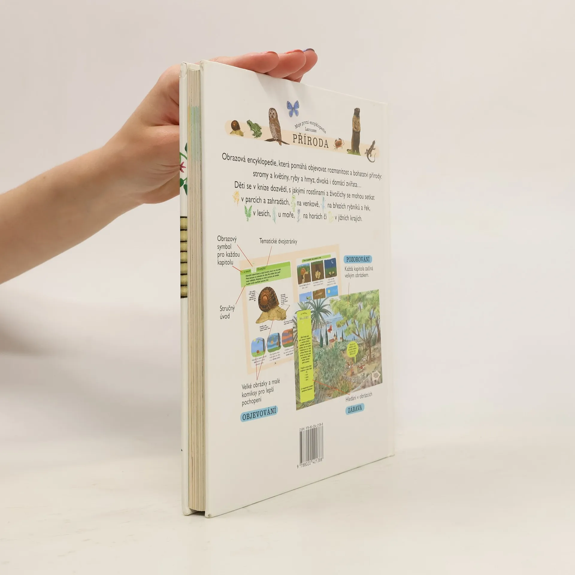Obrazová encyklopedie určená dětem, která pomáhá poznat rozmanitost a bohatost přírody: stromy a květiny, drobné živočichy, divoká i hospodářská zvířata. Mladé čtenáře provází světem zahrad a parků, zavede je na venkov, do lesů a hor, na mořská pobřeží i břehy rybníků a řek.
