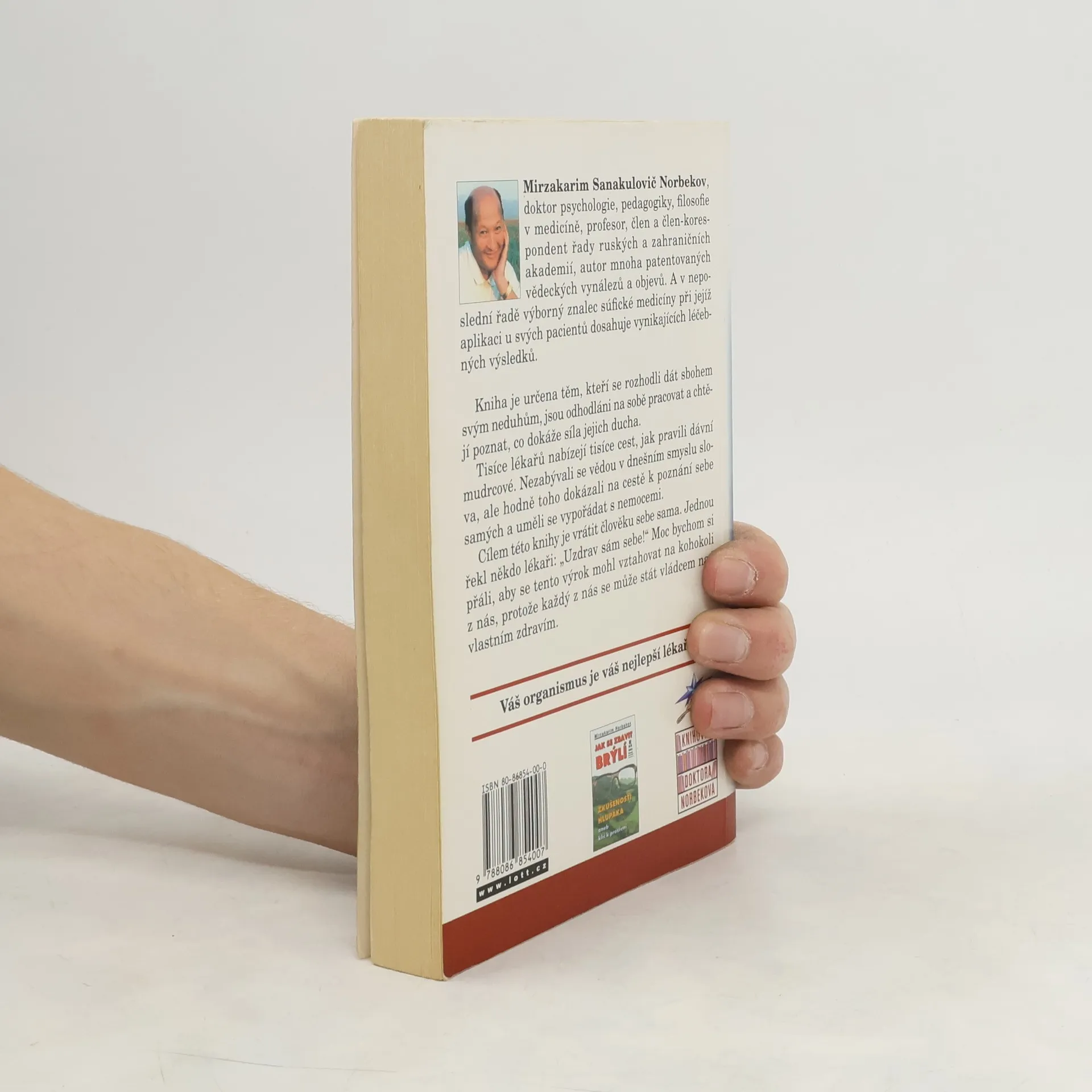 Mirzakarim S. Norbekov je doktor psychologie, doktor pedagogiky, doktor filosofie v medicíně, profesor, člen a člen – korespondent řady ruských a zahraničních akademií, autor mnoha patentovaných vědeckých vynálezů a objevů. Má vskutku široký kruh zájmů. Mnohé přivádí k údivu skutečnost, že se tolik schopností slučuje v jedné osobě: výtvarník, skladatel, spisovatel, režisér, umělec, sportovec, … A hlavně je autor této knihy odborník na "súfijskou" praktickou medicínu, která je jedna z nejstarších na světě. Tisíce lékařů nabízejí tisíce cest, jak pravili dávní mudrcové. Nezabývali se vědou v dnešním smyslu slova, ale hodně toho dokázali na cestě k poznání sebe samých a uměli se vypořádat s nemocemi. Cílem této knihy je vrátit člověku sebe sama a je určena těm, kteří se rozhodli dát sbohem svým neduhům, jsou odhodlání na sobě pracovat a chtějí poznat, co dokáže síla jejích ducha. Každý z nás se může stát vládcem nad vlastním zdravím.