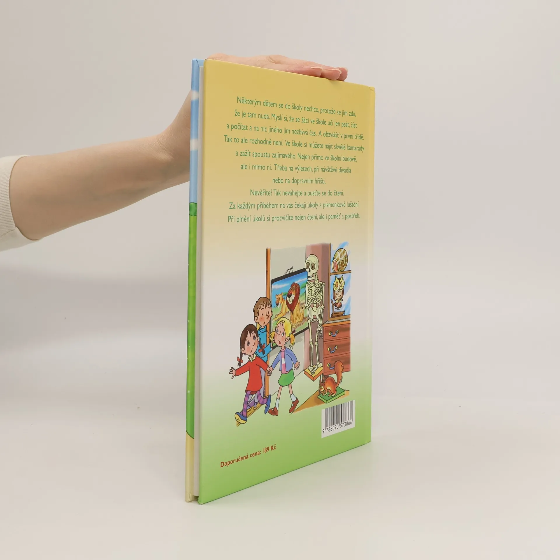 Některým dětem se do školy nechce, protože se jim zdá, že je tam nuda. Myslí si, že se žáci ve škole učí jen psát, číst a počítat a na nic jiného jim nezbývá čas. A obzvlášť v první třídě. Tak to ale rozhodně není. Ve škole si můžete najít skvělé kamarády a zažít spoustu zajímavého. Nejen přímo ve školní budově, ale i mimo ni. Třeba na výletech, při návštěvě divadla nebo na dopravním hřišti. Nevěříte? Tak neváhejte a pusťte se do čtení. Za každým příběhem na vás čekají úkoly a písmenkové luštění. Při plnění úkolů si procvičíte nejen čtení, ale i paměť a postřeh.