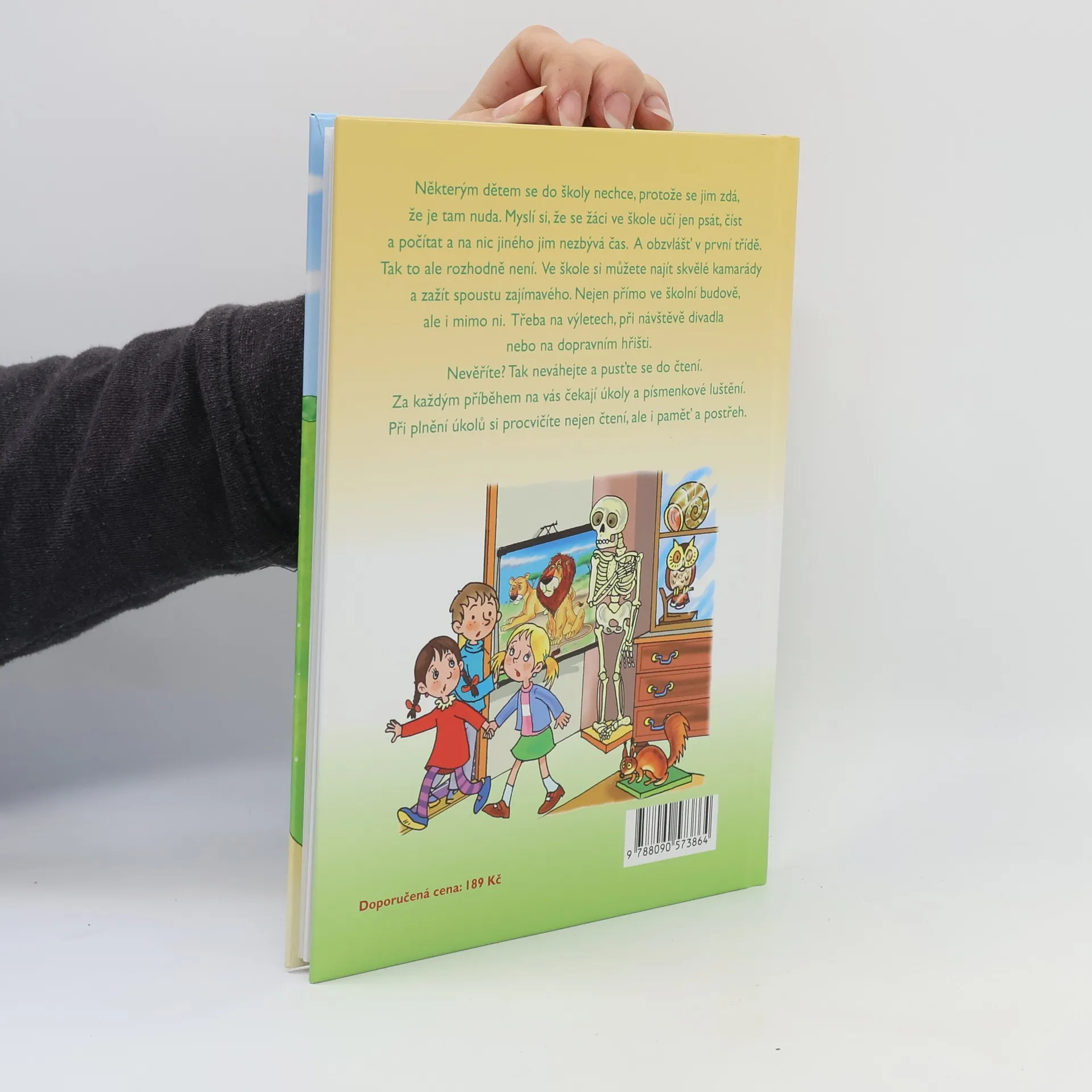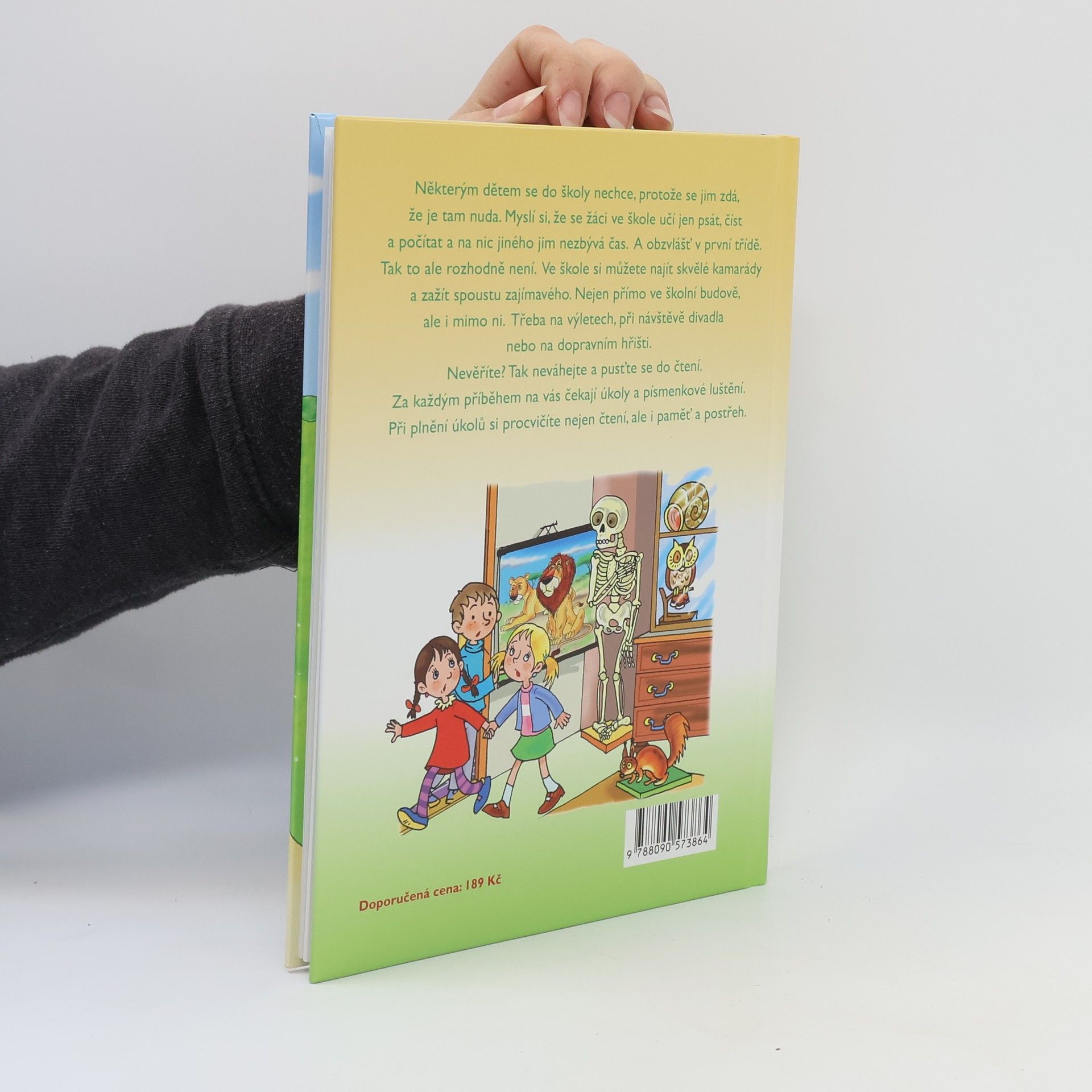 Některým dětem se do školy nechce, protože se jim zdá, že je tam nuda. Myslí si, že se žáci ve škole učí jen psát, číst a počítat a na nic jiného jim nezbývá čas. A obzvlášť v první třídě. Tak to ale rozhodně není. Ve škole si můžete najít skvělé kamarády a zažít spoustu zajímavého. Nejen přímo ve školní budově, ale i mimo ni. Třeba na výletech, při návštěvě divadla nebo na dopravním hřišti. Nevěříte? Tak neváhejte a pusťte se do čtení. Za každým příběhem na vás čekají úkoly a písmenkové luštění. Při plnění úkolů si procvičíte nejen čtení, ale i paměť a postřeh.