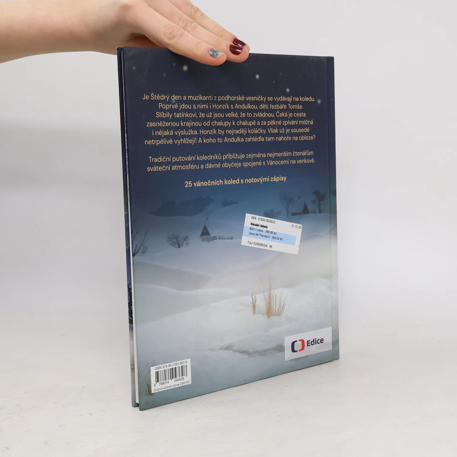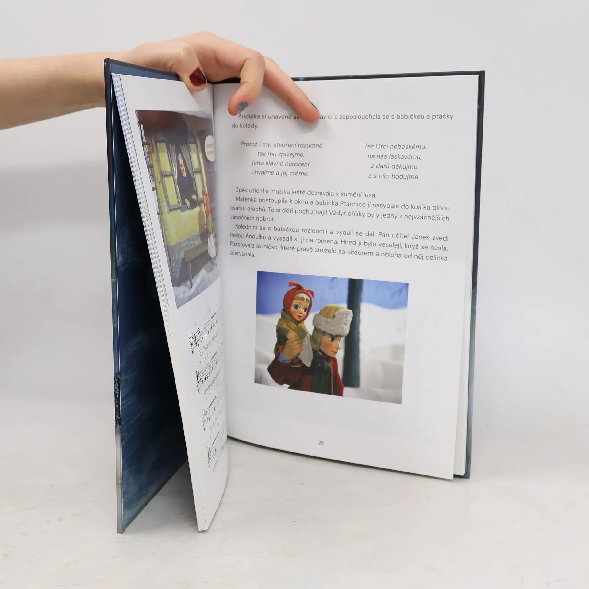 Kniha Vánoční koledy přibližuje zejména nejmenším čtenářům sváteční atmosféru a dávné obyčeje spojené s Vánocemi na venkově. Lidoví muzikanti z malé podhorské vesničky se o Štědrém dnu vydávají na putování od chalupy k chalupě, kde za koledu vždy dostanou nějakou výslužku, ať již hliněný džbánek, pletené palčáky, červené botky nebo perníkové figurky. Podle toho, jakým řemeslem se obyvatelé chalupy živí nebo jakou rukodělnou prací se zabývají. Když se pak den nachýlí, navracejí se unavení, ale šťastní muzikanti za tmy do svých domovů ke štědrovečernímu stolu a děti se samozřejmě nejvíce těší na dárky od Ježíška. Lidové koledy provázané s vypravěčským slovem líčí příběh narození Jezulátka a nejmladší z koledníků, čtyřletá Andulka, si ho živě dokresluje ve svých představách.