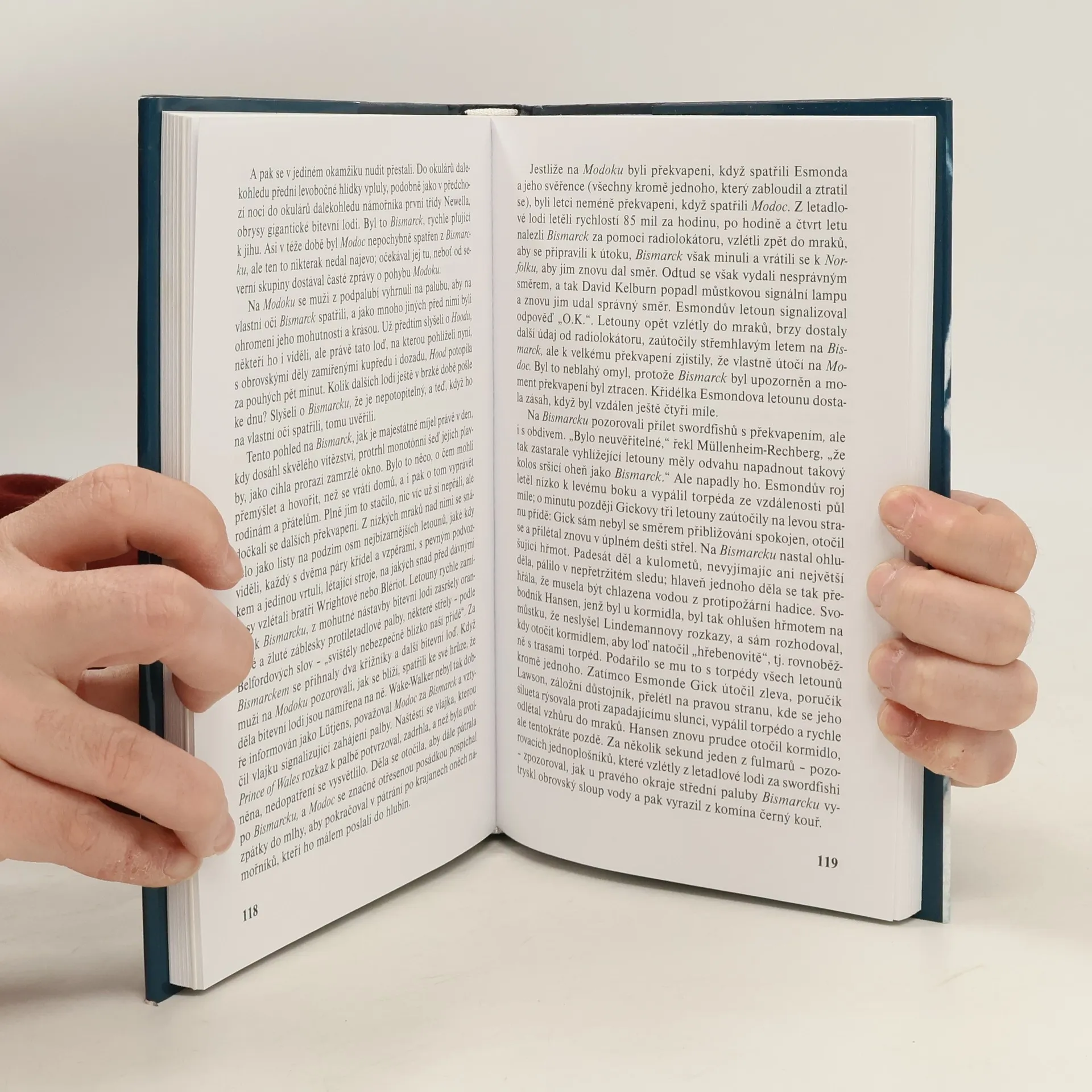 V květnu 1941 pronikla německá bitevní loď Bismarck, tehdy nejmohutnější válečná loď na světě, v rámci operace Rheinübung do Atlantiku, a vážně tak ohrozila obchodní trasy, na nichž byla Británie životně závislá. Britská admiralita zorganizovala mohutnou akci, jejímž jediným cílem bylo její vypátrání, uštvání a potopení. Do pronásledování, jež se v osmi dnech odehrávalo na nesmírných oceánských prostorách, do nějž se zapojili i příslušníci jiných národností a při němž přišlo o život přes 4000 námořníků, bylo zapojeno několik desítek lodí… Krátce po půl jedenácté 27. května 1941 se nad planoucím vrakem bývalé pýchy německého válečného námořnictva zavřela neklidná hladina Atlantiku. Skončila tím i jedna z velkých událostí historie námořního válčení a zaujala místo vedle bitev u Salaminy, Lepanta, anglického loďstva s Armadou, u Trafalgaru, Cušimy, Jutska, Midwaye a v Korálovém moři. Doslov Aleš Skřivan, 3. vydání.
