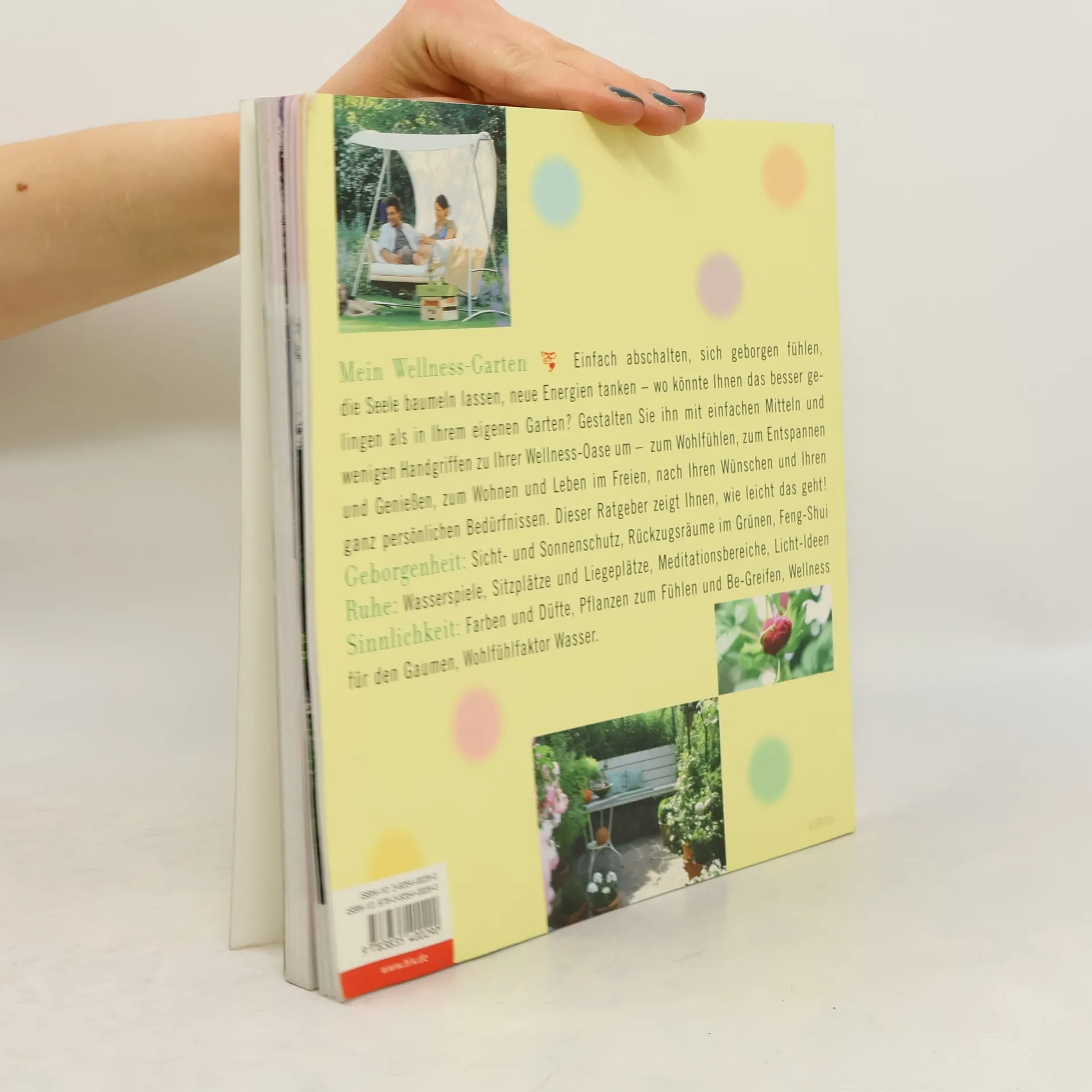 Der Garten als Refugium für die Seele: Sicht- und Sonnenschutz, Rückzugsräume im Grünen, Feng Shui, Sitz- und Liegeplätze, Meditationsbereiche, Licht-Ideen, Farben und Düfte, Pflanzen zum Fühlen und Be-Greifen, Wellness für den Gaumen, Wohlfühlfaktor Wasser.