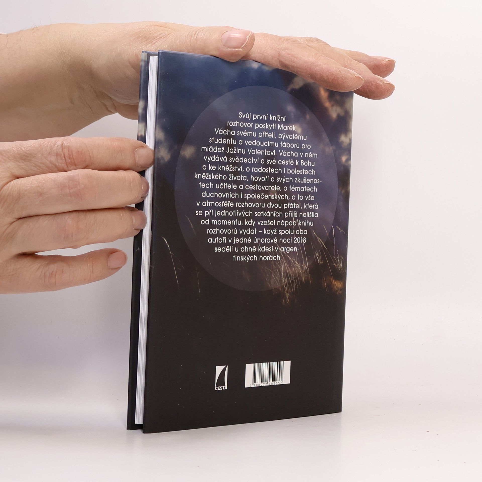 Svůj první knižní rozhovor poskytl Marek Vácha svému příteli, bývalému studentu a vedoucímu táborů pro mládež Jožinu Valentovi. Vácha v něm vydává svědectví o své cestě k Bohu a ke kněžství, o radostech i bolestech kněžského života, hovoří o svých zkušenostech učitele a cestovatele, o tématech duchovních i společenských, a to vše v atmosféře rozhovoru dvou přátel, která se při jednotlivých setkáních příliš nelišila od momentu, kdy vzešel nápad knihu rozhovorů vydat – když spolu oba autoři v jedné únorové noci 2018 seděli u ohně kdesi v argentinských horách.