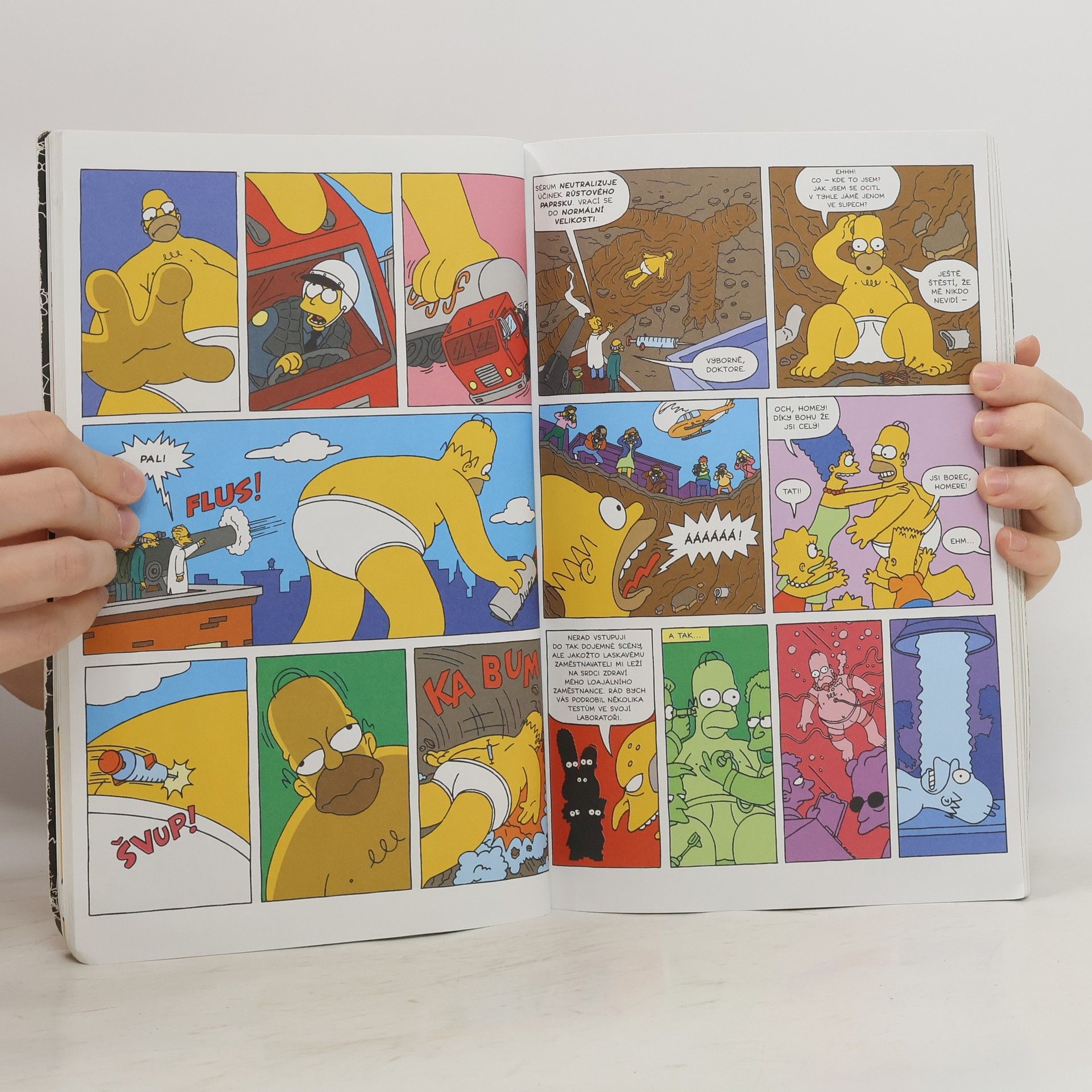 Konečně jsou tady! Ohromný, kolosální a hlavně nenakrmitelný Homer vyrostlý po nezdařeném experimentu, Bart, který se dostane do moci svého úhlavního nepřítele Leváka Boba, Šáša coby zvláštní agent i speciální hororový příběh o sběrateli komiksů - a mnohem víc. Ředitel Skinner, odporně bohatý Berns a jeho pato-a-kdo-ví-co-ještě-lízal Smithers, Marge, Líza i Maggie, ti všichni se jen třesou na to, aby vás mohli pobavit. Příběhy: Ohromný kolosální Homer Sběratel Bob se vrací! Prokleté romance Záhada zmizení Springfieldské Pumy Šáša, agent útvaru K.L.A.U.N. Je to v kartách Dobrodružství drsňáka jménem Busman