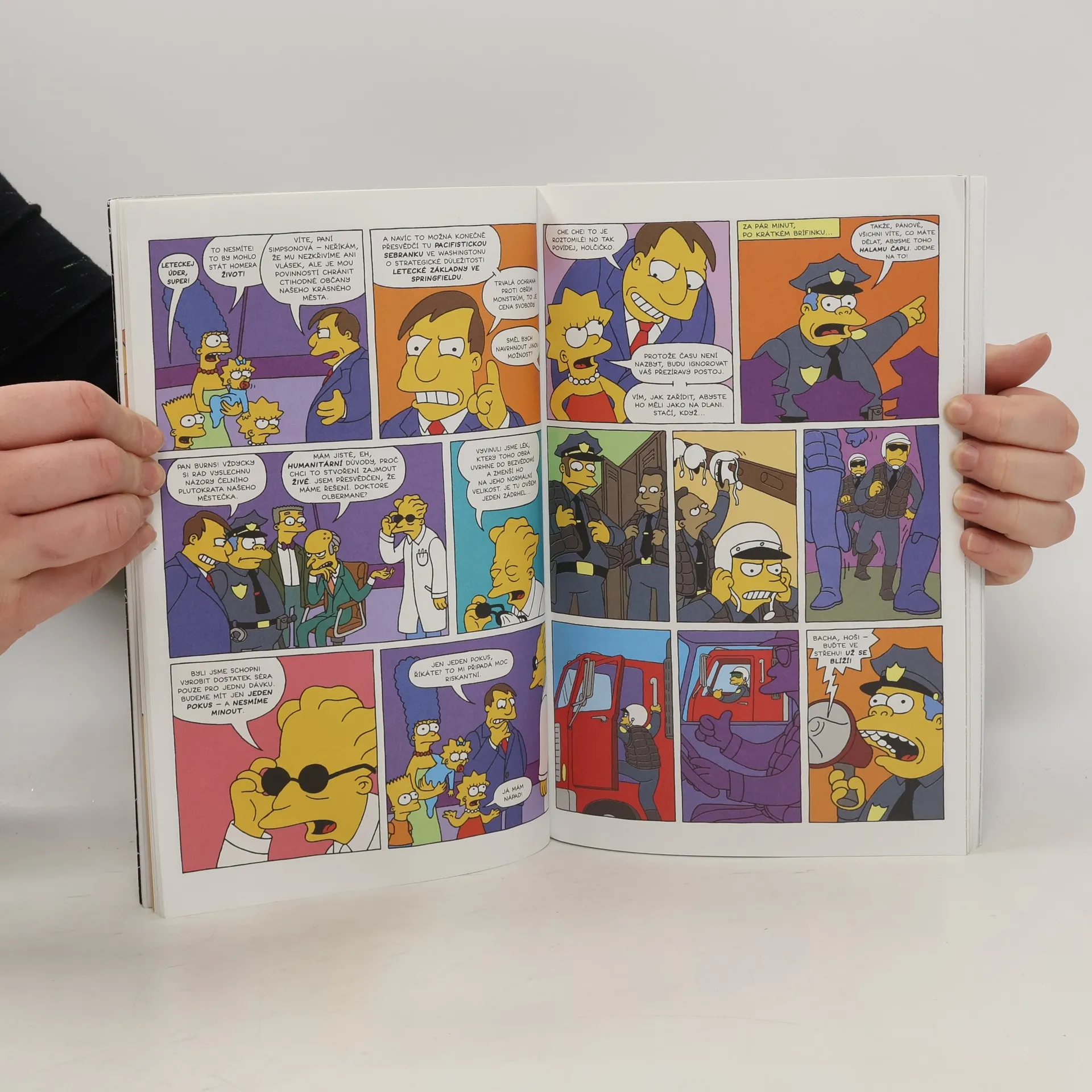 Konečně jsou tady! Ohromný, kolosální a hlavně nenakrmitelný Homer vyrostlý po nezdařeném experimentu, Bart, který se dostane do moci svého úhlavního nepřítele Leváka Boba, Šáša coby zvláštní agent i speciální hororový příběh o sběrateli komiksů - a mnohem víc. Ředitel Skinner, odporně bohatý Berns a jeho pato-a-kdo-ví-co-ještě-lízal Smithers, Marge, Líza i Maggie, ti všichni se jen třesou na to, aby vás mohli pobavit. Příběhy: Ohromný kolosální Homer Sběratel Bob se vrací! Prokleté romance Záhada zmizení Springfieldské Pumy Šáša, agent útvaru K.L.A.U.N. Je to v kartách Dobrodružství drsňáka jménem Busman