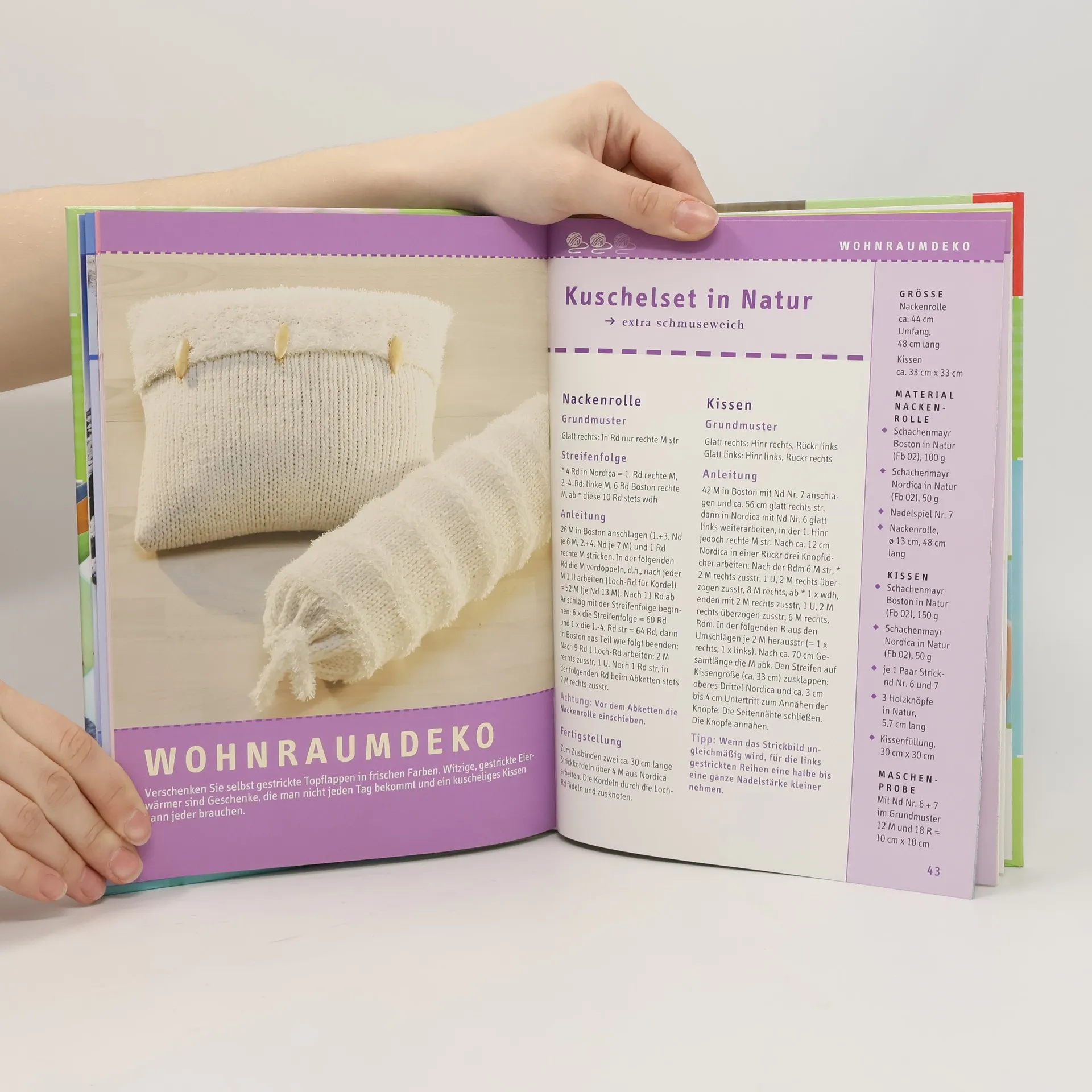Im Buch sind die schönsten Strickideen versammelt mit traumhafter Mode und Accessoires, gestrickten Kleinigkeiten für die Kids oder kuscheligen Kissen zum Träumen. Auch Socken mit der passgenauen Bumerang-Ferse fehlen nicht und können dank dem integrierten Sockenlehrgang ganz einfach nachgearbeitet werden. Das Besondere: Alle Strickmodelle können im Handumdrehen am Wochenende angefertigt werden. 64 Seiten, 19,5 x 27,7 cm, Hardcover, Vorlagen im Buch