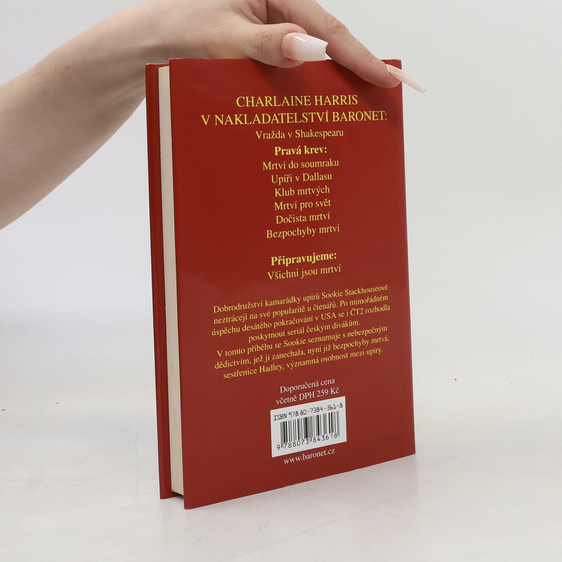 Protože má Sookie Stackouseová tak málo příbuzných, vůbec se jí nelíbí, že přišla o další - o svou sestřenici Hadley, družku královny luisianských upírů. Hadley zanechala Sookie všechen svůj majetek, když před pár týdny nečekaně skonala, i když vlastně byla již dlouho neživá. Ale vymáhat dědictví se zdá být značně riskantní. Jsou totiž tací, kteří by neradi viděli, kdyby se Sookie seznámila s Hadleyinou minulostí, a i s jejím majetkem, příliš důkladně. A jsou připraveni použít všech dostupných prostředků, aby jí v tom zabránili. A ať je to kdokoli, jsou určitě nebezpeční, a Sookin život je opět v ohrožení.