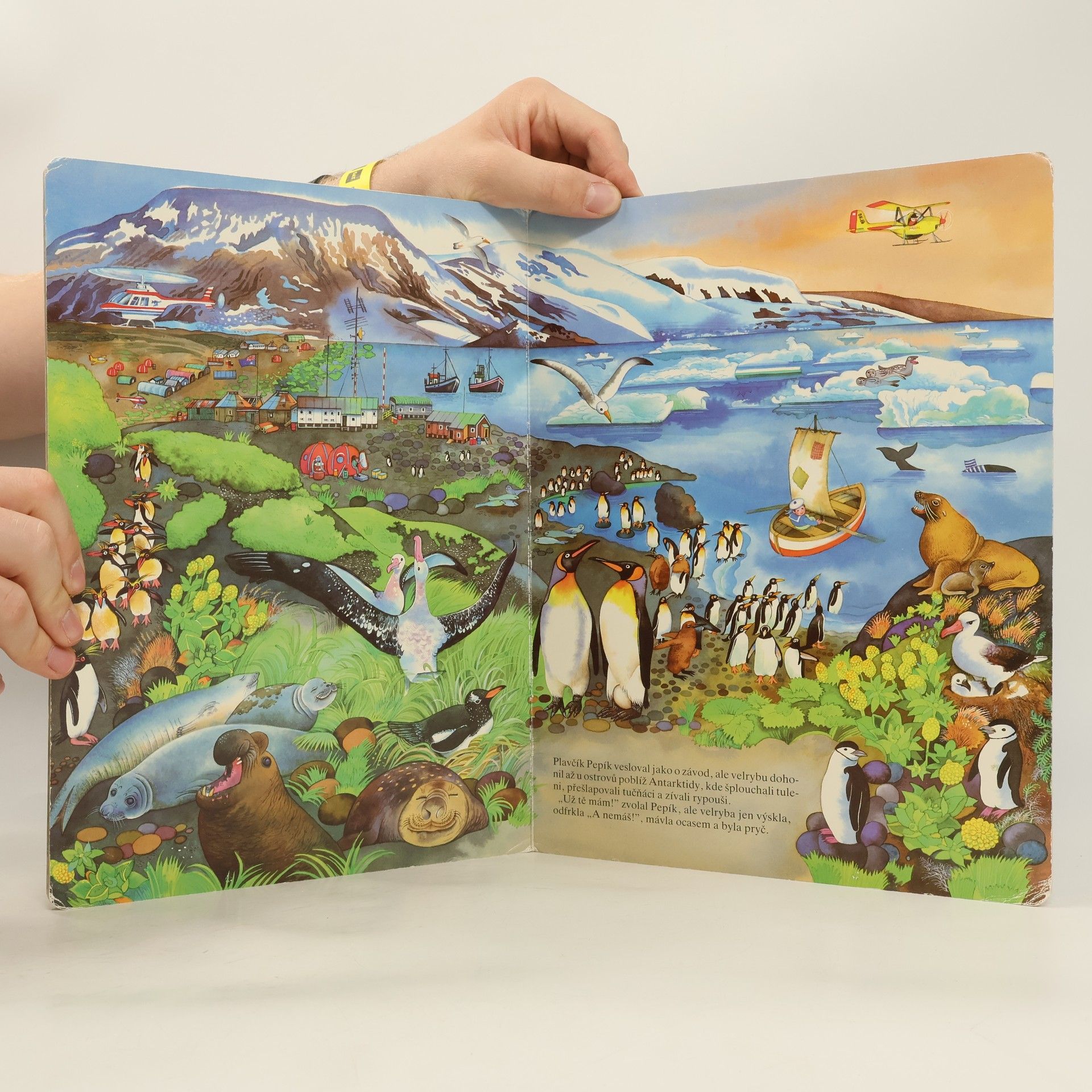 Velké leporelo pro nejmenší s barevnými ilustracemi zvířat z celého světa a pohádkovým příběhem.