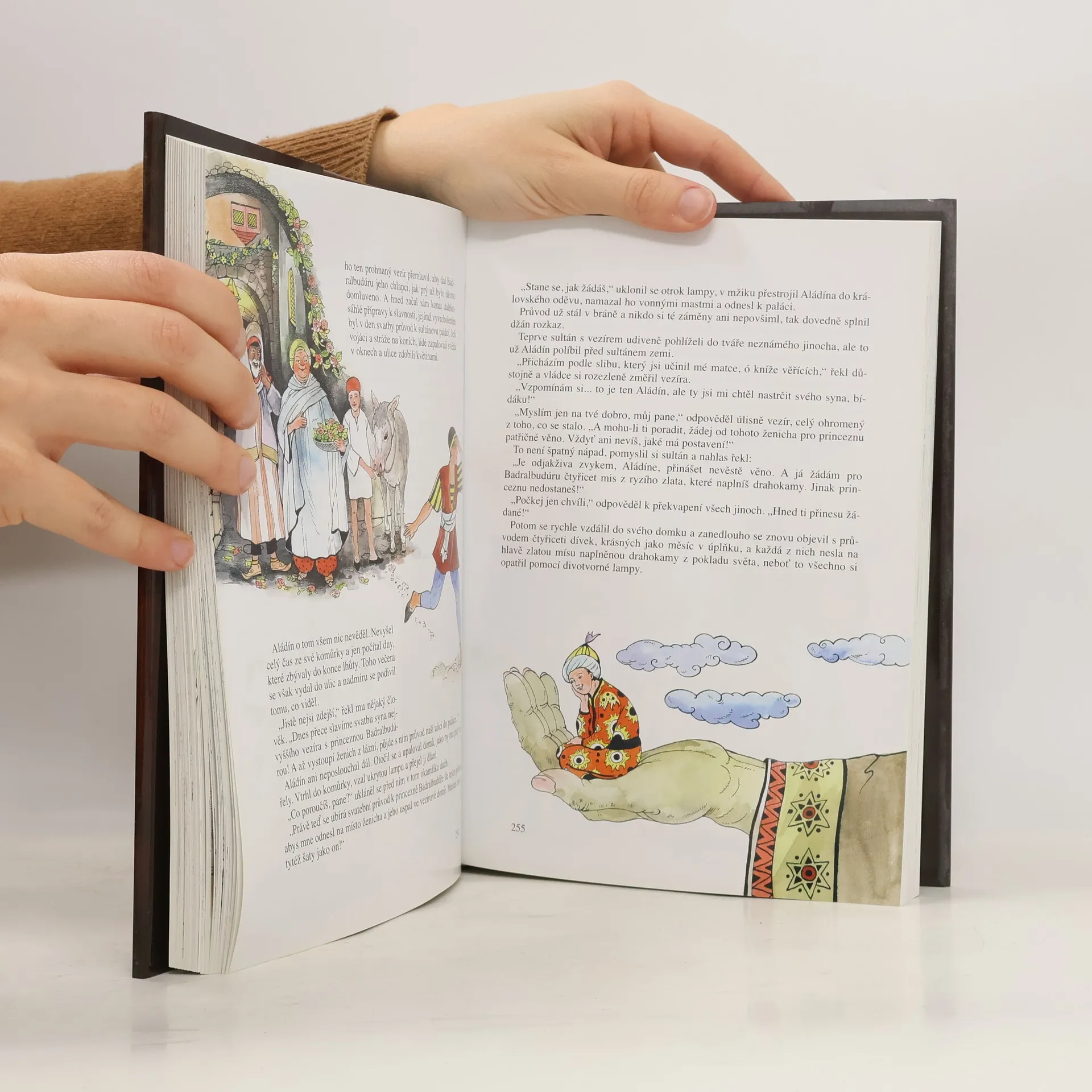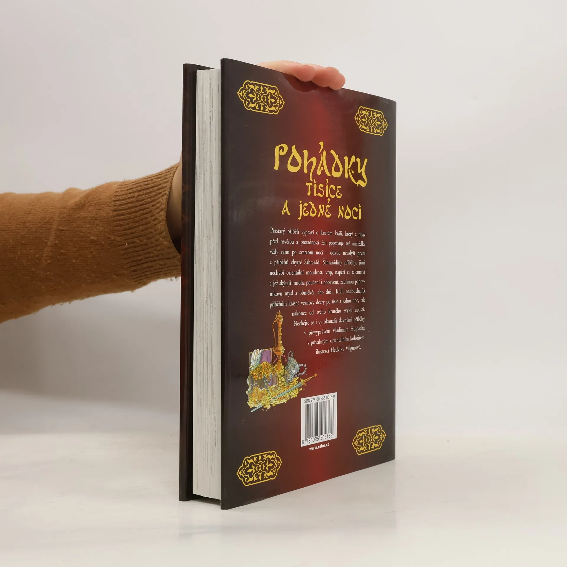 Pohádky tisíce a jedné noci je kniha s nádhernými ilustracemi a orientálním koloritem. Šeherezáda, která silou svého vyprávění dokázala obměkčit srdce krutého vladaře, jím nepochybně okouzlí i další z desítek generací.