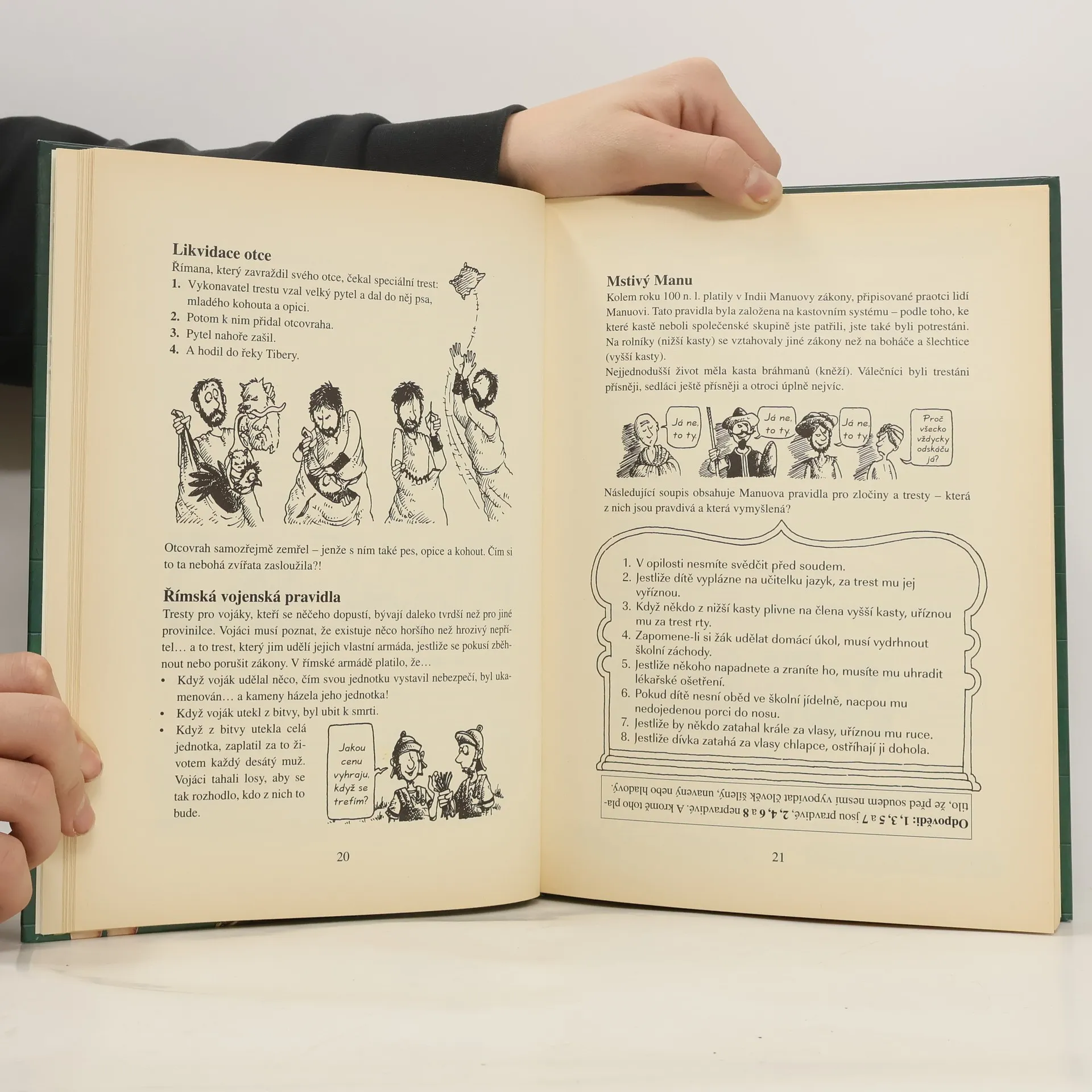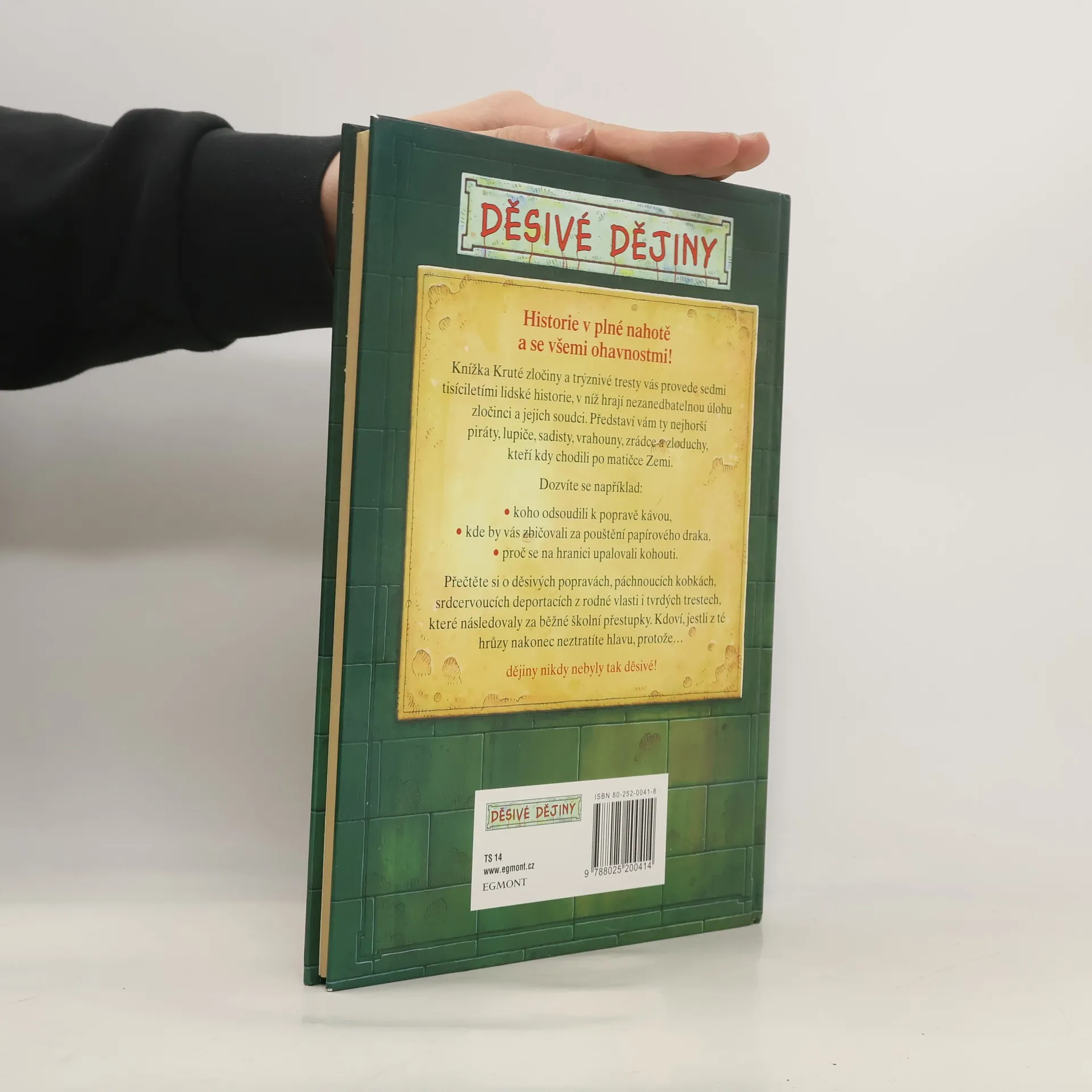 Historie v plné nahotě a se všemi ohavnostmi! Tato knížka vás provede sedmi tisíciletími lidské historie, v níž hrají nezanedbatelnou úlohu zločinci a jejich soudci. Představí vám ty nejhorší piráty, lupiče, sadisty, vrahouny, zrádce a zloduchy, kteří kdy chodili po matičce Zemi. Dozvíte se například, koho odsoudili k popravě kávou, kde by vás zbičovali za pouštění papírového draka, proč se na hranici upalovali kohouti. Přečtěte si také o děsivých popravách, páchnoucích kobkách, srdcervoucích deportacích z rodné vlasti i tvrdých trestech, které následovaly za běžné školní přestupky. Kdoví, jestli z té hrůzy nakonec neztratíte hlavu, protože dějiny nikdy nebyly tak děsivé!