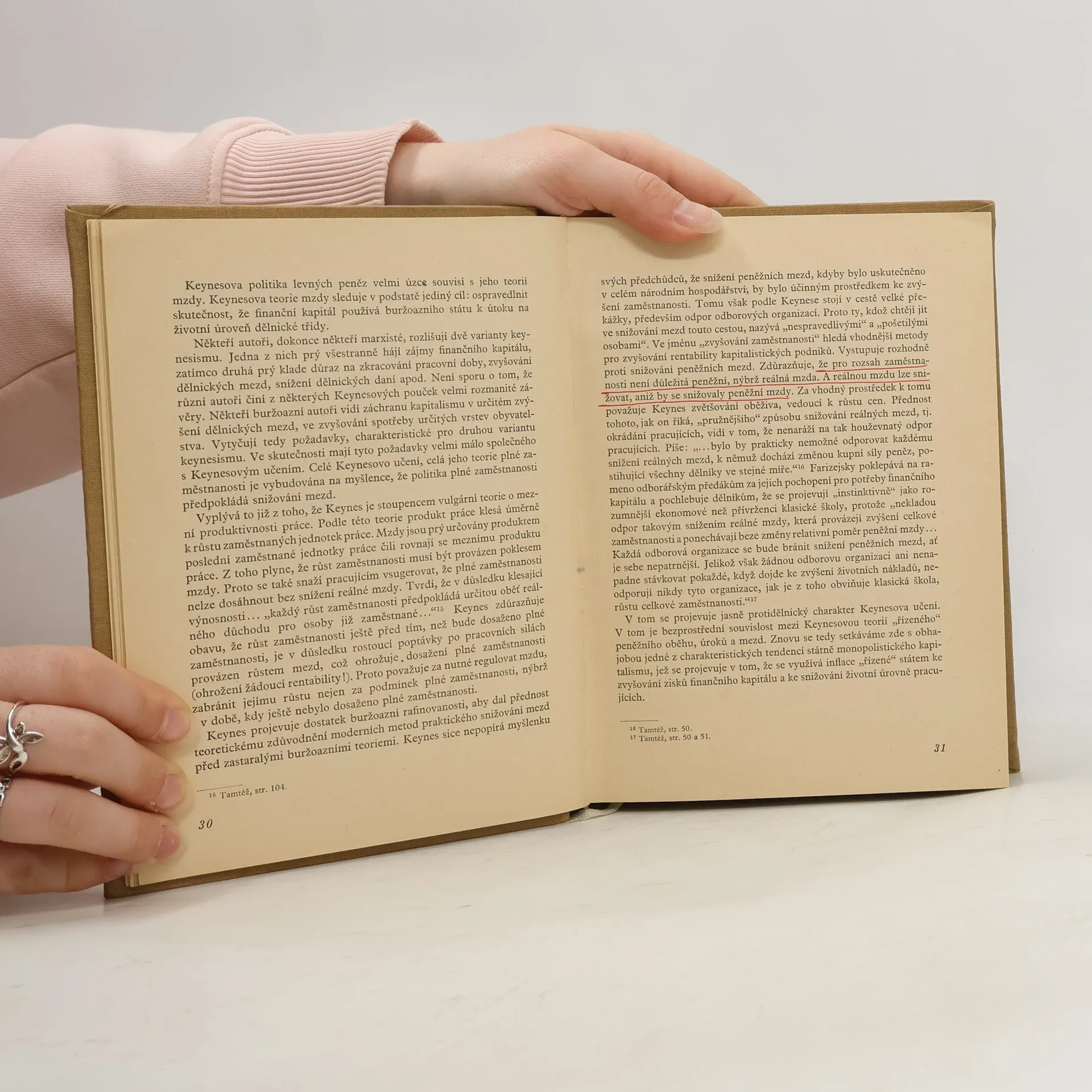 Mnozí na Západě považují dílo J.M. Keynese za mezník ekonomické vědy; dokonce jej srovnávají se Smithem, Marxem, Darwinem a Koperníkem. A přece Keynes pouze shrnul v soustavu myšlenky již před ním vyslovené, v soustavu, ježuchvátila nejen západní buržoazní ekonomy, ale i naše pravicové sociální demokraty. Keynes se také v jádře snažil zachovat monopolní kapitalismus. Marxismus však analyzuje a odhaluje prvky jeho teorie, prokapitalistické i tam,kde navrhuje intervenci státní moci.