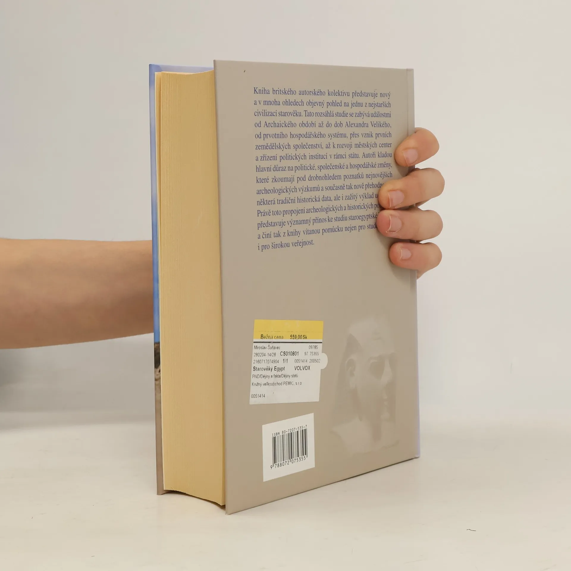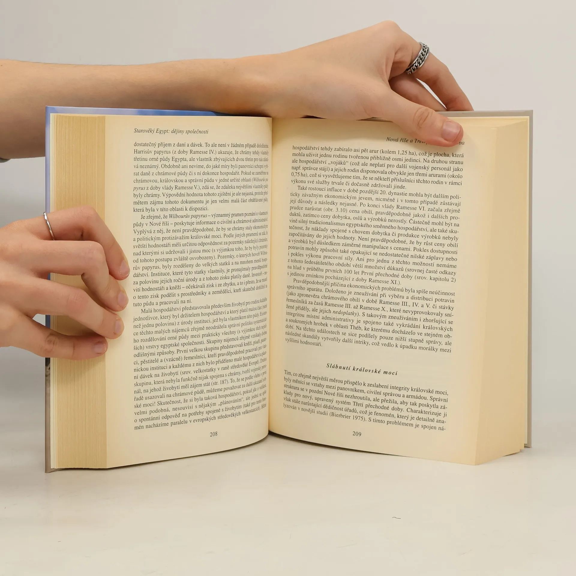 Velmi rozsáhlá a obsažná historická studie zahrnuje historii starověkého Egypta od doby archaické a předdynastické až po pozdní dobu. Autoři se nijak nesnaží o populárnost svého výkladu, takže text je náročný a nasycený daty a detaily. Pozornost autorů se zaměřuje hlavně na egyptskou společnost, na postavení panovníka, kněží a úředníků v jednotlivých historických etapách. Mnoho zajímavého se můžeme dočíst i o egyptských archeologických nalezištích, o zemědělství, náboženství, vnitřní i zahraniční politice Egypta. Kniha, určená spíše ke studiu než k zábavnému čtení, je zakončena rozsáhlou bibliografií a rejstříky.