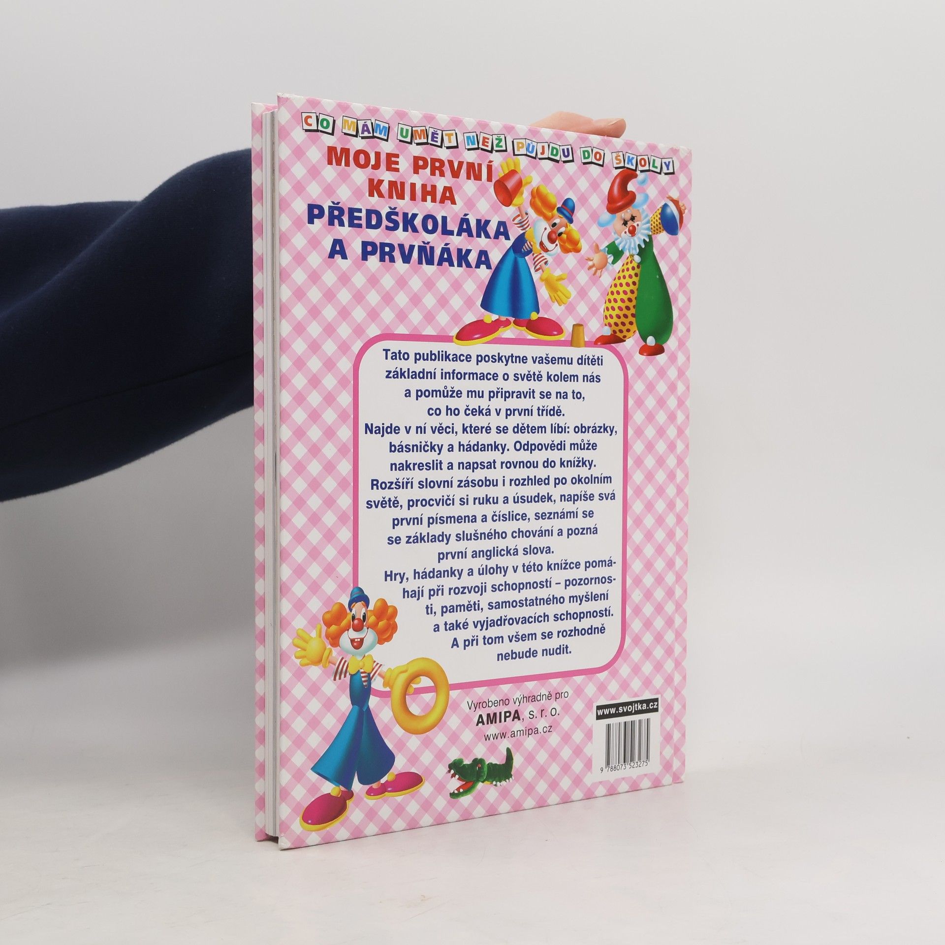 (Dotisk v r. 2007 a 2009). Tato publikace poskytne vašemu dítěti základní informace o světě kolem nás a pomůže mu připravit se na to, co ho čeká v první třídě. Najde v ní věci, které se dětem líbí: obrázky, básničky a hádanky. Odpovědi může nakreslit a napsat rovnou do knížky. Rozšíří slovní zásobu i rozhled po okolním světě, procvičí si ruku a úsudek, napíše svá první písmena a číslice, seznámí se se základy slušného chování a pozná první anglická slova. Hry, hádanky a úlohy v této knížce pomáhají při rozvoji schopností - pozornosti, paměti, samostatného myšlení a také vyjadřovacích schopností. A při tom všem se rozhodně nebude nudit.
